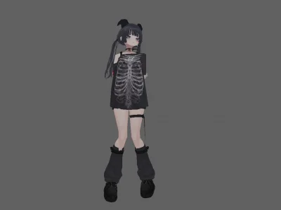 Модель «Munkki» - Это аниме-модель персонажа в готическом стиле с черными волосами и характерными аксессуарами, адаптированная для использования в качестве скина игрока для CS 1.6