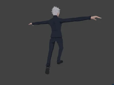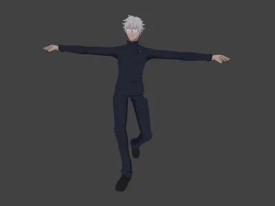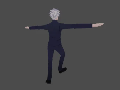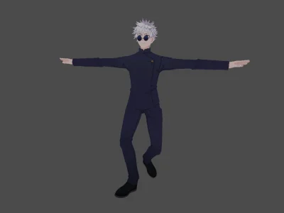 Модель «Сатору Годжо» - Сатору Годжо из «Магической битвы», представленная в стандартной T-позе Персонаж обладает фирменной прической и темными очками, а также имеет две версии расцветки костюма: