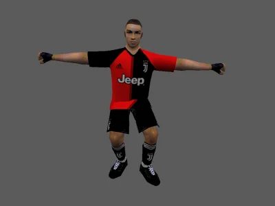 Модель «Криштиану Роналду» - в форме «Ювентуса» с седьмым номером, Персонаж представлен в КТ+TТ-позах с двумя вариантами расцветки экипировки: сине-черной и красно-черной.