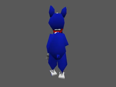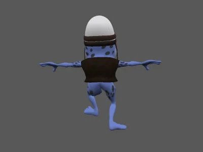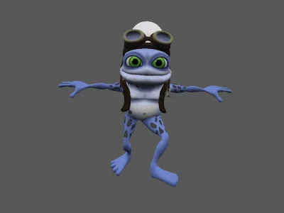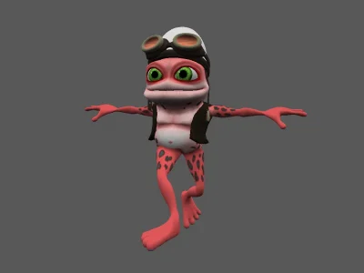 Модель «Безумный лягушонок» — Яркая модель Crazy Frog: тело разделено на красный и синий, глянцевая текстура, большие безумные глаза, неоновое свечение, мультяшный стиль и ощущение постоянного