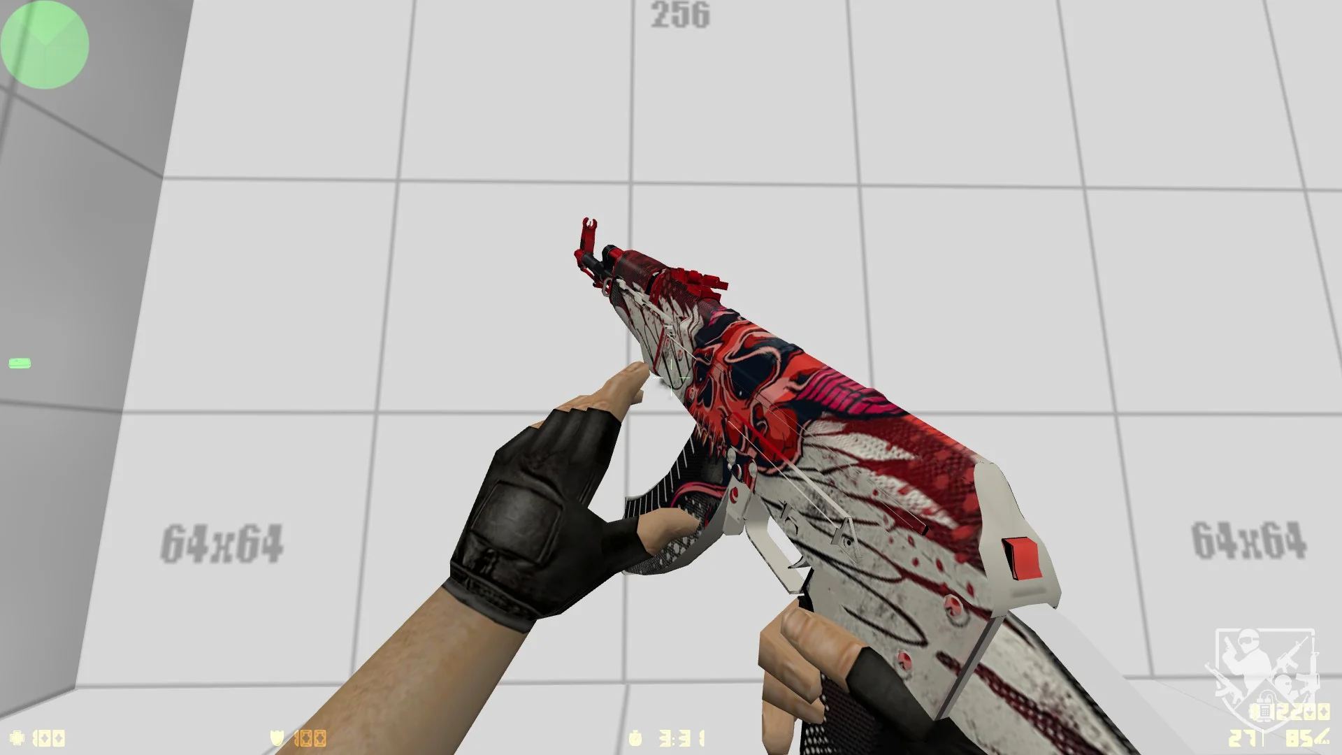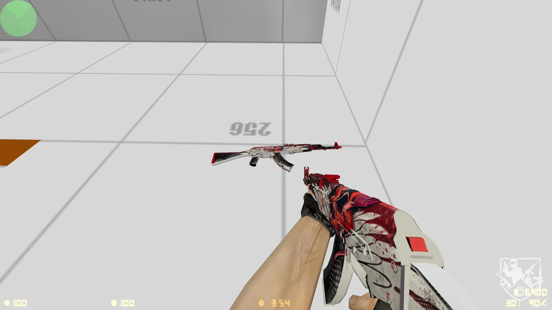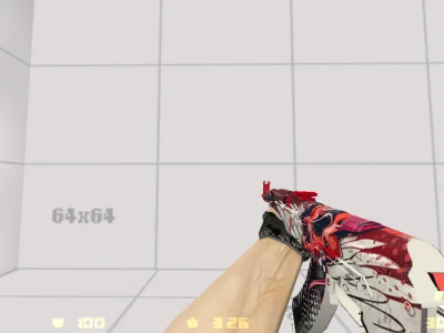 Модель AK-47 «Шакал» - Эта модификация AK-47 для CS 1.6 представляет собой кастомную модель с агрессивным дизайном, сочетающим белый, черный и ярко-красный цвета с детализированным изображением демонического черепа на ствольной коробке. Оружие дополнено без пальцев и качественными текстурами, которые делают классический автомат визуально современным и эффектным в игровом процессе.