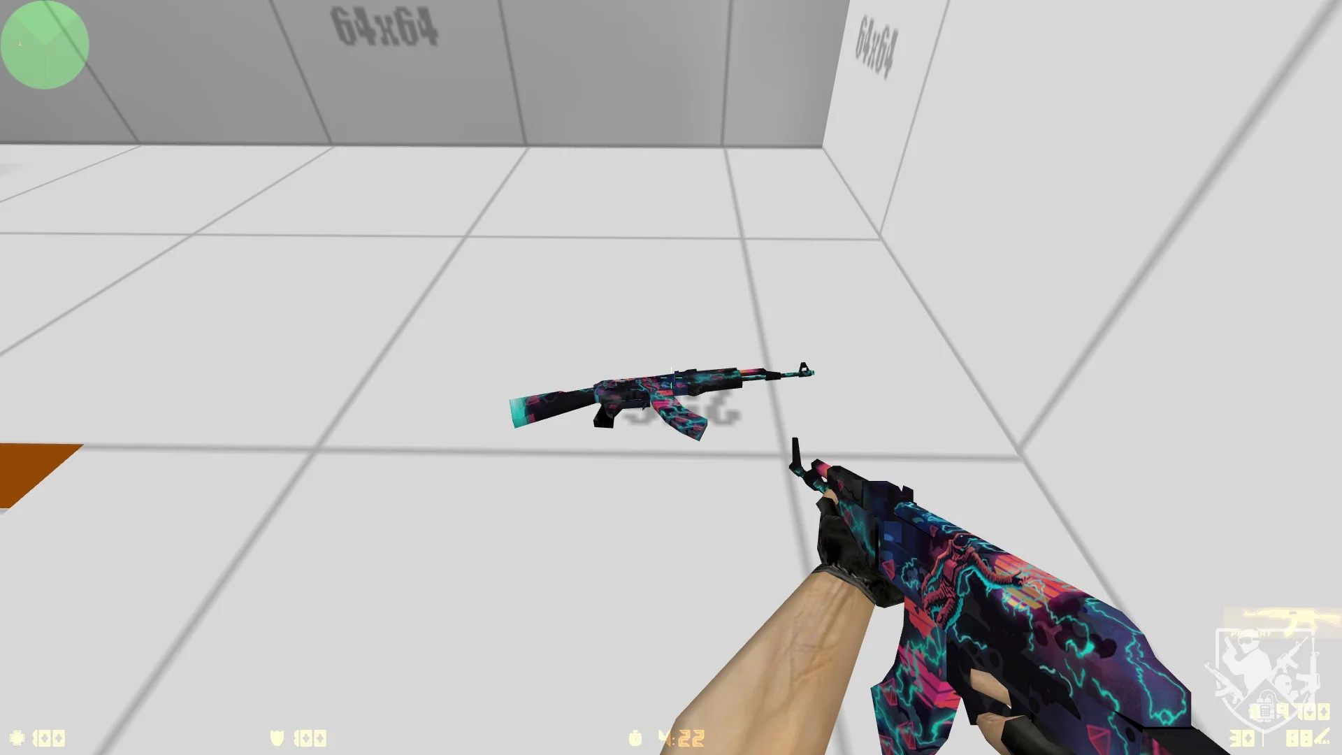 Модель AK-47 Астронавт - Это модифицированный AK-47 для CS 1.6 с ярким скином в стиле киберпанк или ретровейв. Оружие украшено изображением космонавта в окружении неоновых молний и космических пейзажей, выполненных в фиолетовых, бирюзовых и розовых тонах на черном фоне. Такой дизайн придает оружию футуристический и энергичный вид.