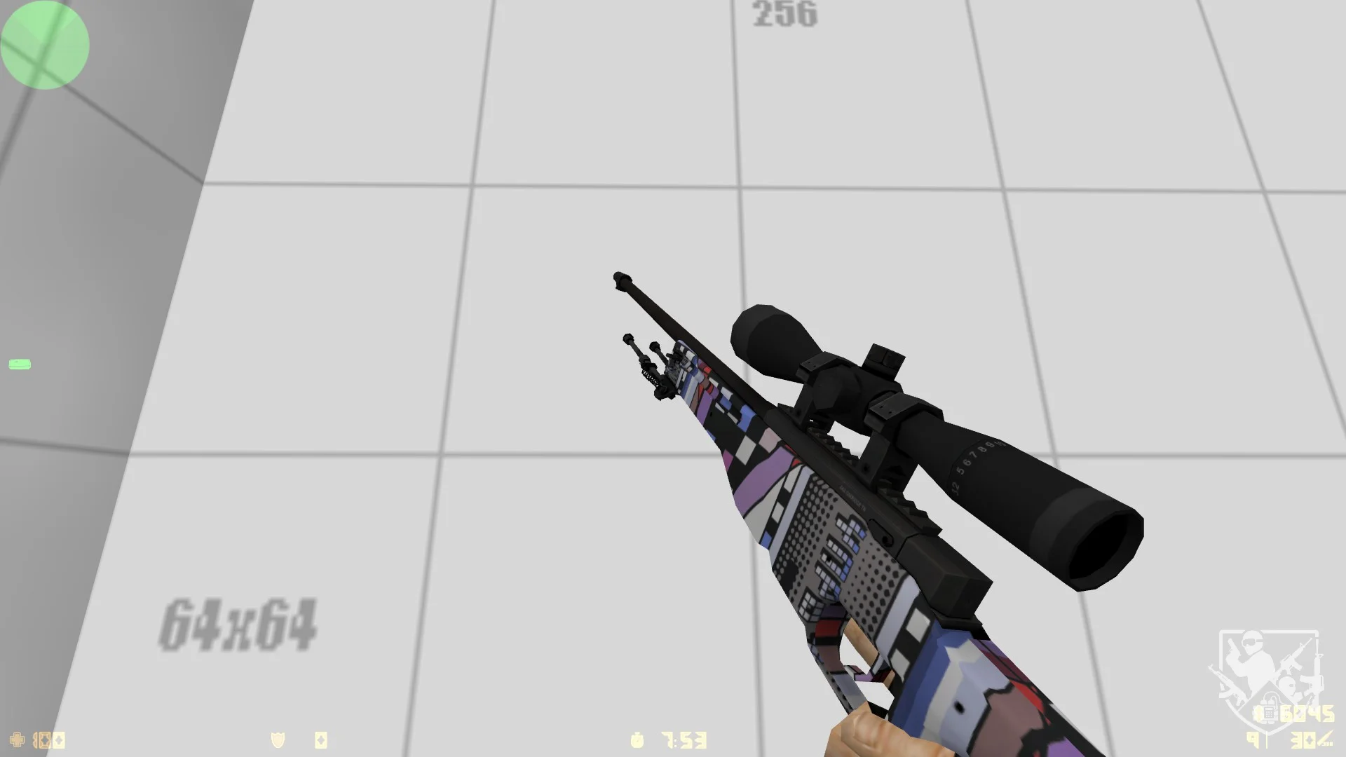 AWP | Поп-AWP - Эта модель AWP для CS 1.6 выполнена в оригинальном «цифровом» стиле с использованием элементов глитч-арта. Геометрические блоки, пиксельные вставки и сочетание приглушенных фиолетовых, синих и белых оттенков придают снайперской винтовке футуристический и высокотехнологичный вид. Скин отлично сбалансирован и выделяется на фоне стандартных моделей своей необычной «цифровой» текстурой.