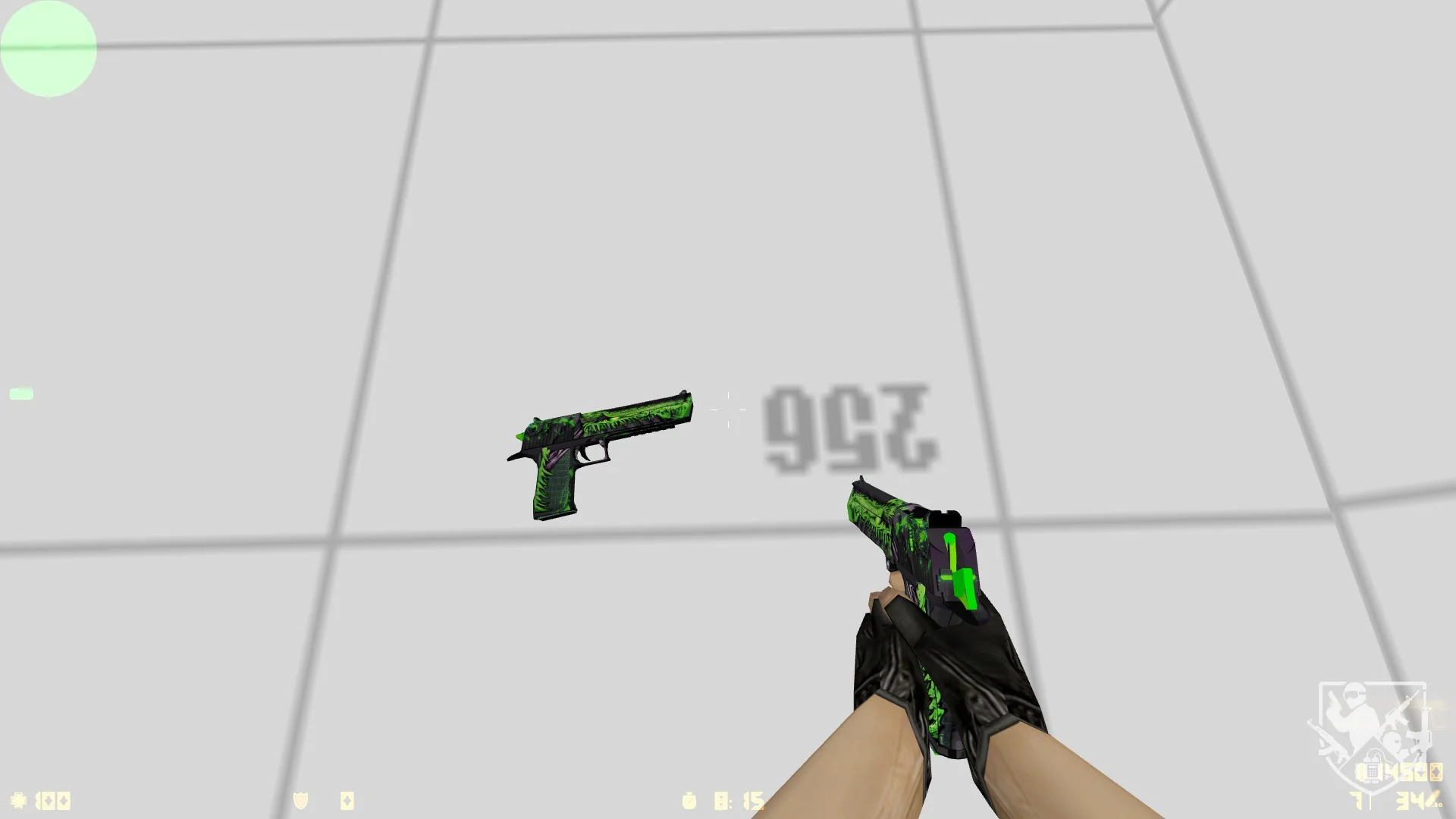 Модель «Deagle Toxicator» - Этот Desert Eagle для CS 1.6 выполнен в агрессивном и стильном дизайне, который можно охарактеризовать как “ядовито-зеленый” или “токсичный”. Основной цвет пистолета - насыщенный черный, который контрастирует с яркими, неоновыми зелеными узорами. Эти узоры имеют хаотичную, брызгающую текстуру, напоминающую ядовитую слизь или кислотные разводы. Некоторые элементы узора имеют острые, угловатые формы, напоминающие зубы или когти, что придает оружию хищный и опасный вид.