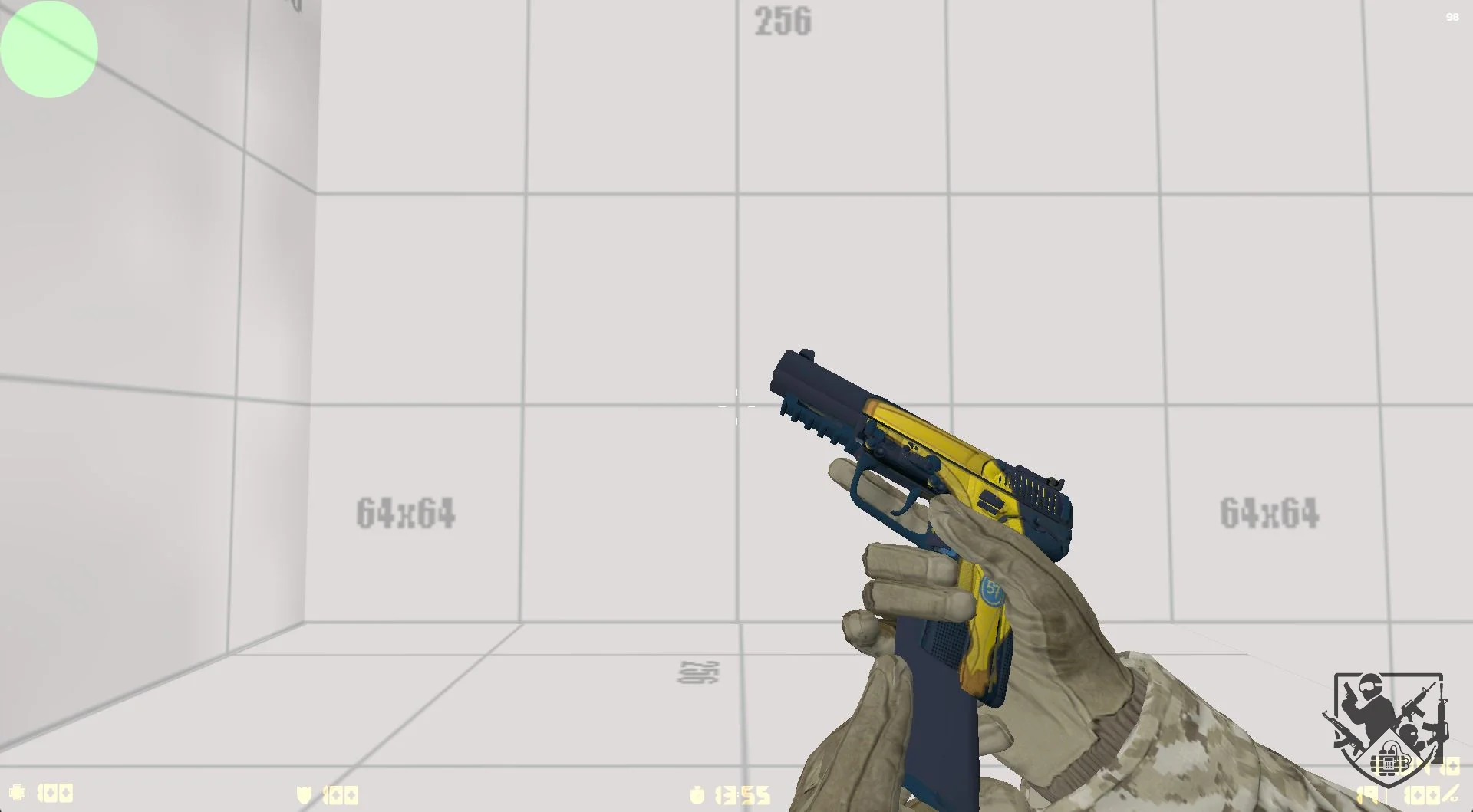 Модель Five-Seven «Blue Blitz» - яркое сочетание насыщенного жёлтого корпуса и глубоких тёмно-синих элементов подчёркивает агрессивный и динамичный характер оружия. Чёткие линии и контрастная палитра делают этот скин заметным в любой ситуации.