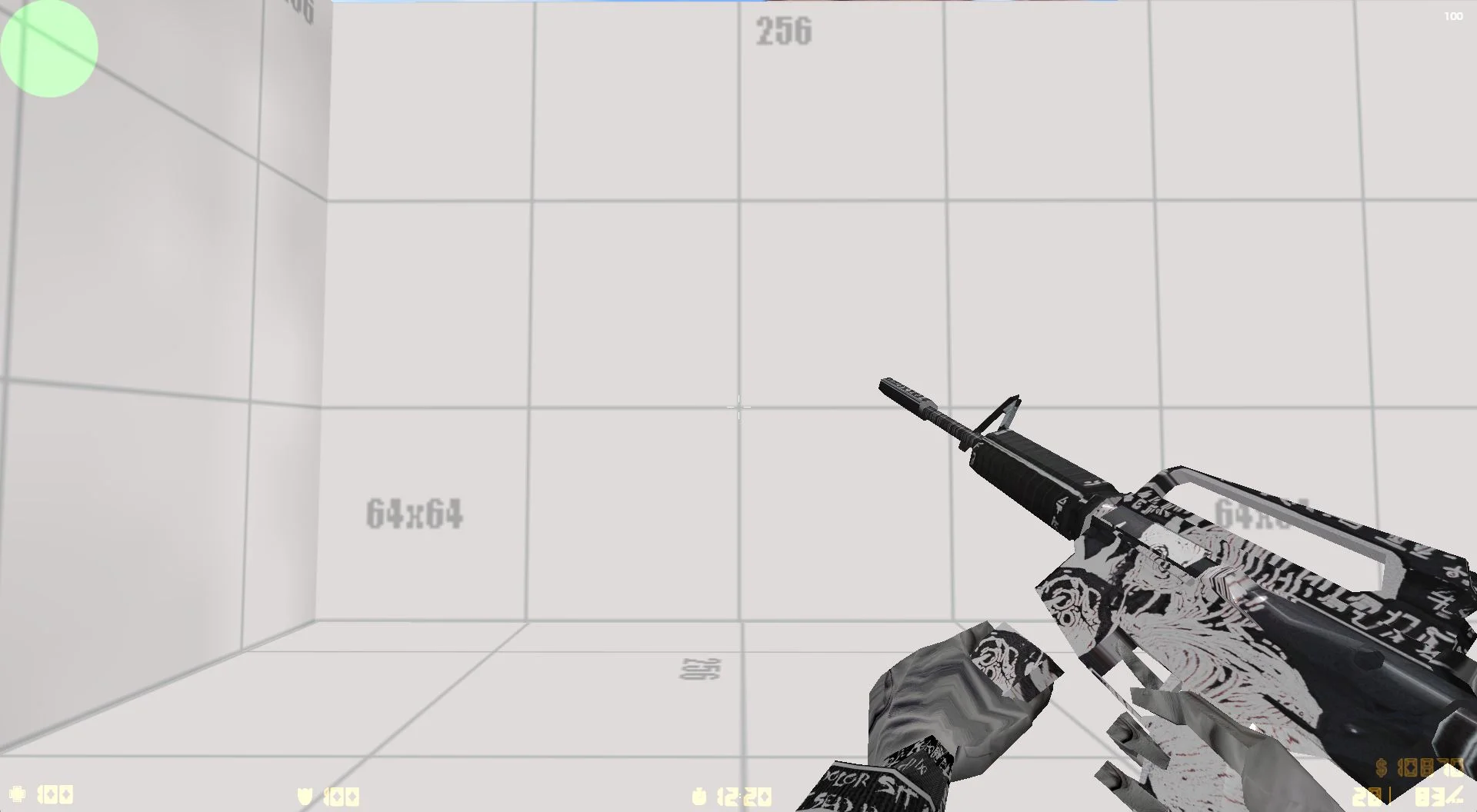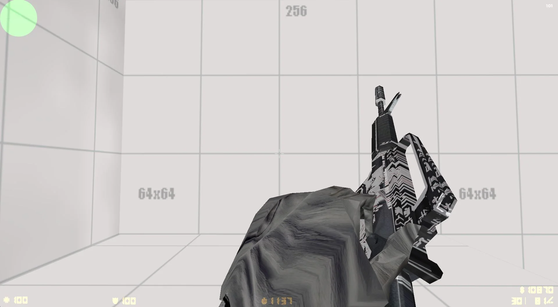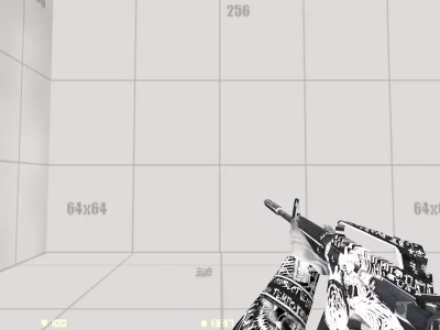 Модель M4A1 «Zxc ver1» - чёрный металл переплетён с белыми линиями, символами и резкими штрихами, словно оружие покрыто кодом скрытого послания. В центре композиции — динамичная фигура, застывшая в моменте движения, как отражение скорости и точности.