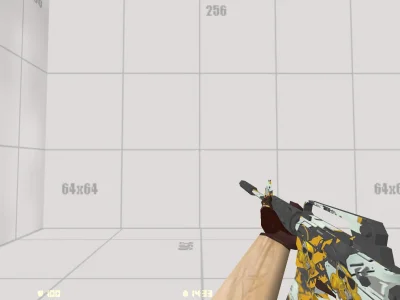 Модель M4A1 «Gold Reaper» - корпус оружия покрыт контрастной бело-чёрной окраской и украшен узором из золотых черепов. Холодные металлические оттенки сочетаются с яркими золотыми элементами, создавая агрессивный и запоминающийся внешний вид. Детали дизайна подчёркивают каждую грань корпуса, а изношенные элементы придают оружию характер боевого ветерана.
