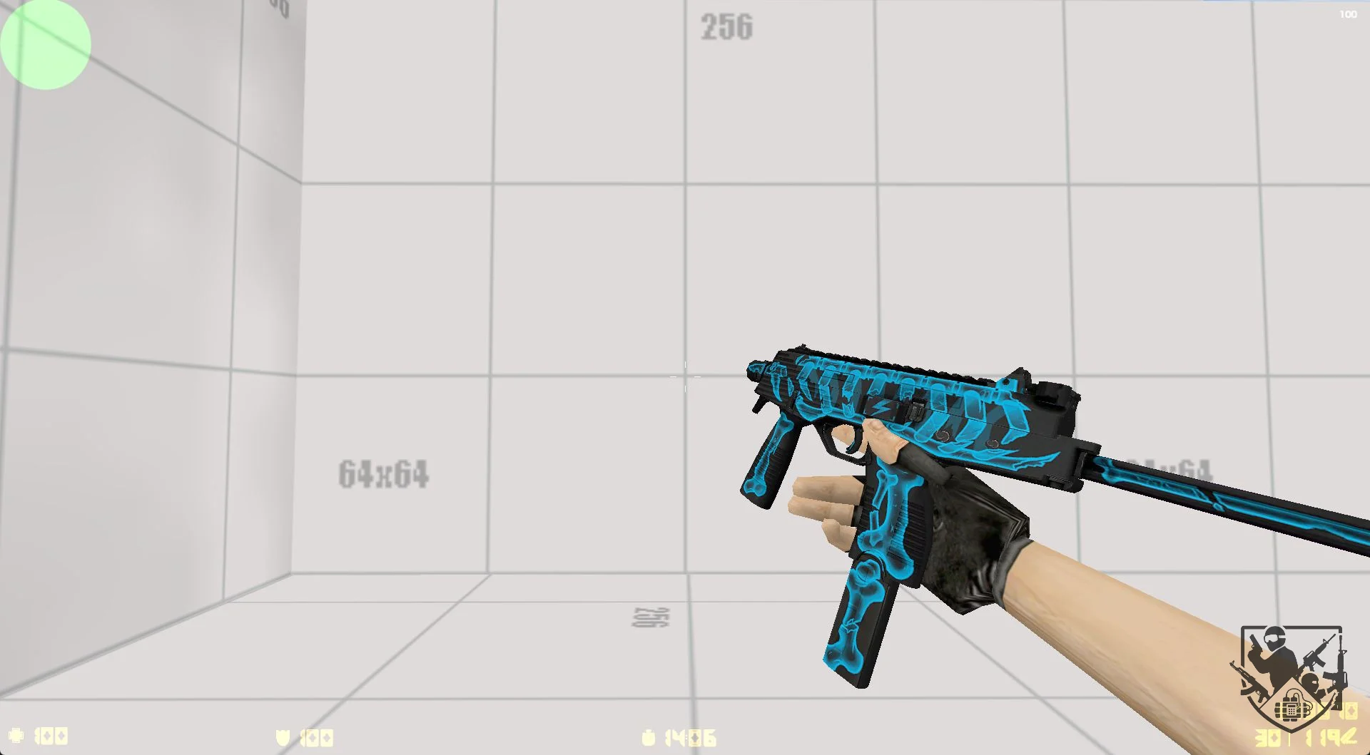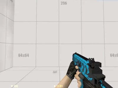 Модель TMP (MP9) «Blue Shockwave» - глубокий чёрный корпус прорезают светящиеся неоново-голубые разряды, будто оружие подпитывается чистой энергией. Холодный киберпанковский стиль и электрический узор создают ощущение постоянного напряжения — словно вы держите в руках заряженный импульс, готовый сорваться в бой.