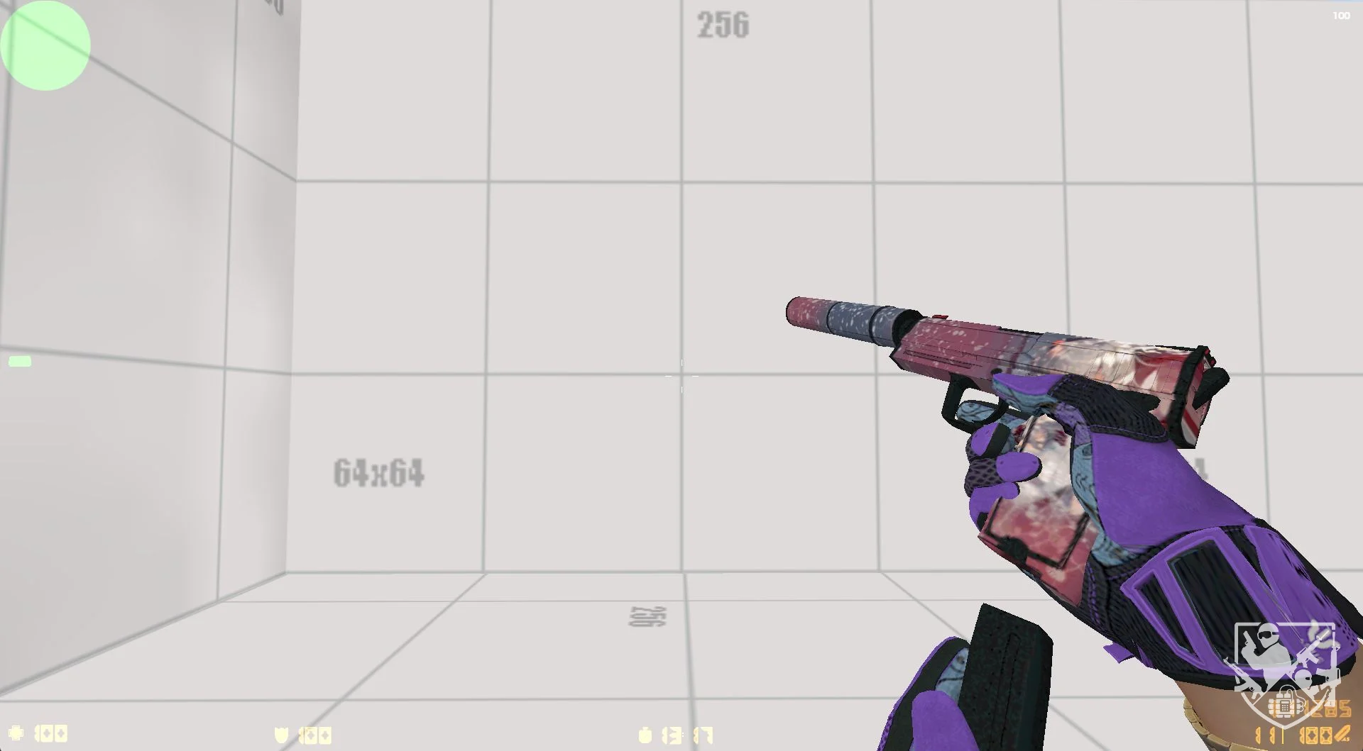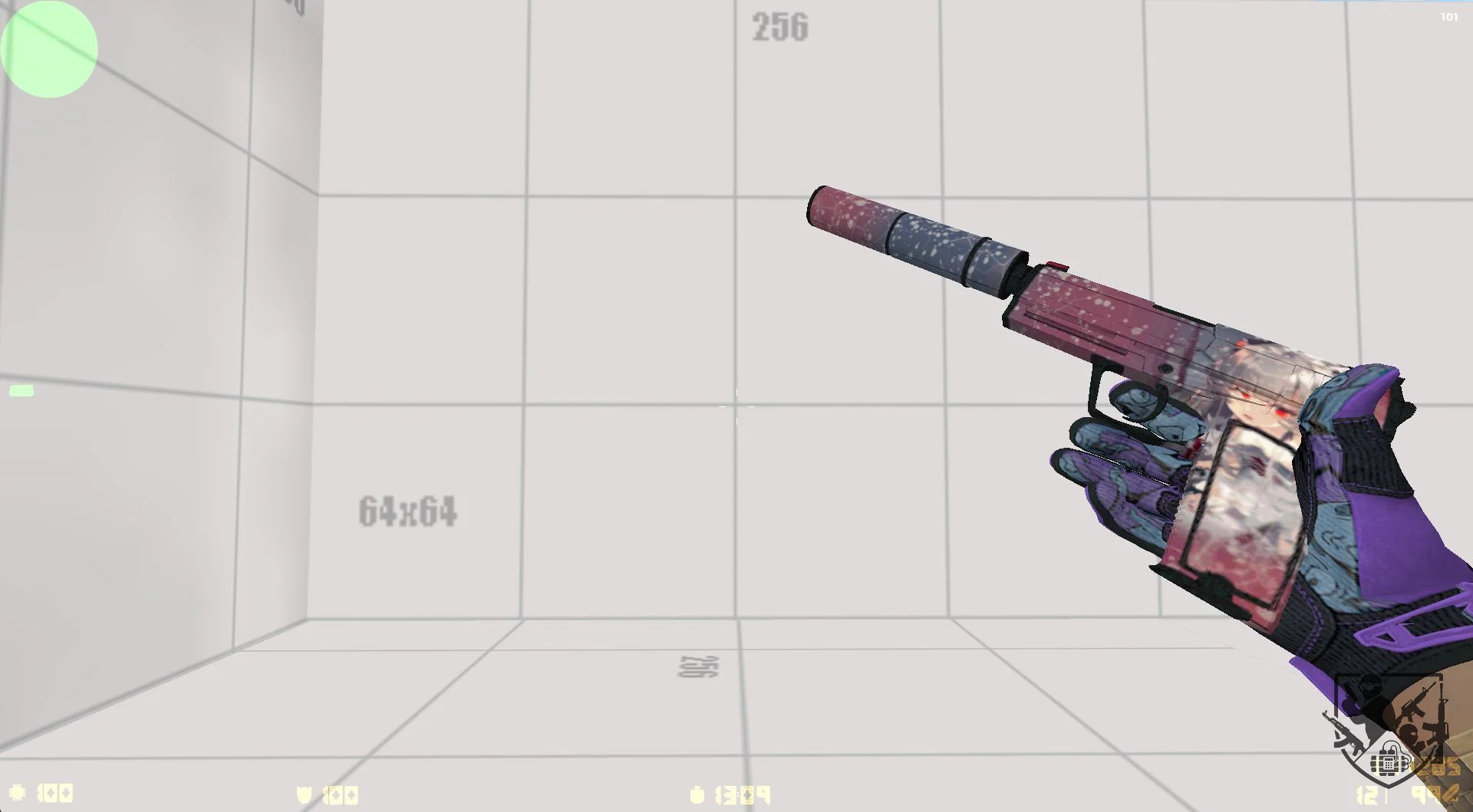 Модель USP-S «Pink Chaos» - тихий, но выразительный. Этот USP-S выполнен в насыщенных розово-бордовых оттенках с хаотичными светлыми брызгами, создающими эффект абстрактного художественного взрыва. Контрастный глушитель в тёмно-синих тонах подчёркивает дерзкий характер скина, а лёгкие следы износа добавляют ему боевой эстетики.