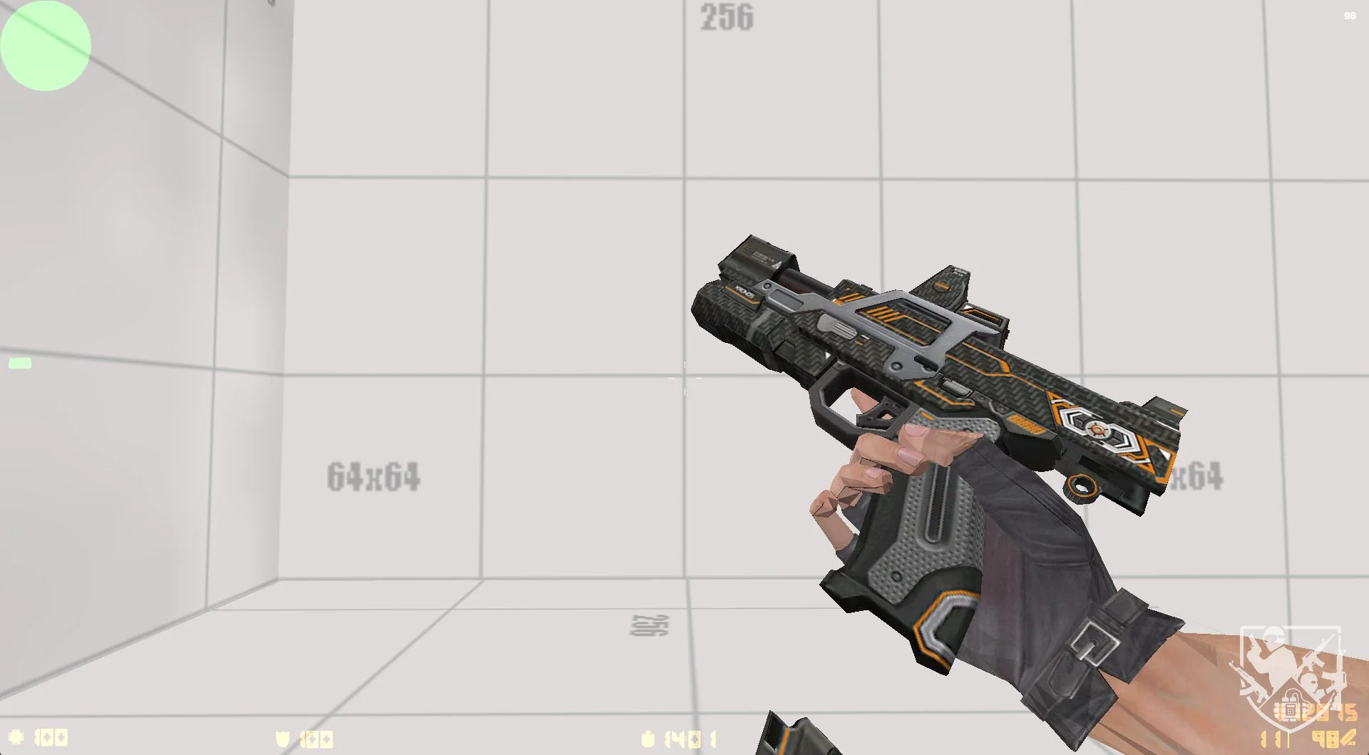 Модель USP-S «Vector X» - этот пистолет получил футуристичный карбоновый корпус с яркими оранжевыми линиями и технологичными элементами. Геометрические узоры и контрастные детали придают оружию агрессивный и современный вид.