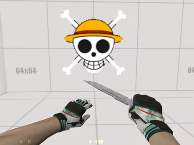 Граффити «логотип луффи» - граффити в виде черепа с крупными черными глазами и улыбкой. Сверху на нем желтая шляпа, а за головой — скрещенные кости.