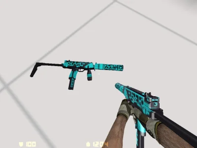 Модель TMP (MP9) «Tron» - данный скин покрыт неоно-голубыми линиями, прост но очень красив хорошо проработанная графика.