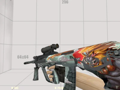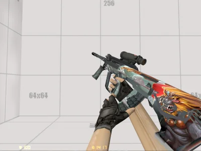 Модель AUG «Storm Dragon» - яркий скин с огненным драконом и демоническим воином на прикладе. Контраст огня, облаков и холодного металла придаёт оружию мощный и агрессивный стиль.