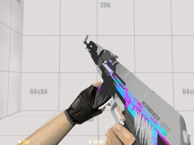 Модель AK-47 «Necromancer» - контраст чёрного и белого металла дополняют яркие неоновые всплески фиолетового и голубого, словно энергия тёмной магии проходит по корпусу оружия.