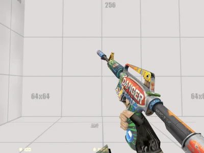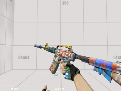 Модель M4A1 «Danger Script» - яркий и дерзкий скин, словно разрисованный уличными художниками. Пёстрые надписи, предупреждающие знаки и граффити создают ощущение хаоса и бунта.