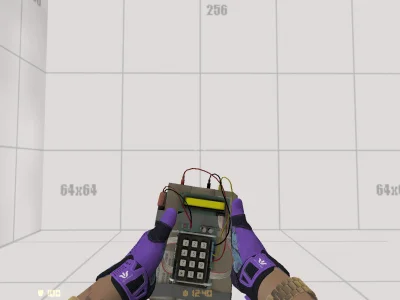 Модель C4 «CS:GO» - футуристичный скин с акцентом на фиолетовые тактические перчатки и неоново-жёлтые элементы детонатора. Контраст тёмных деталей и ярких проводов создаёт стиль киберпанк-оператива.