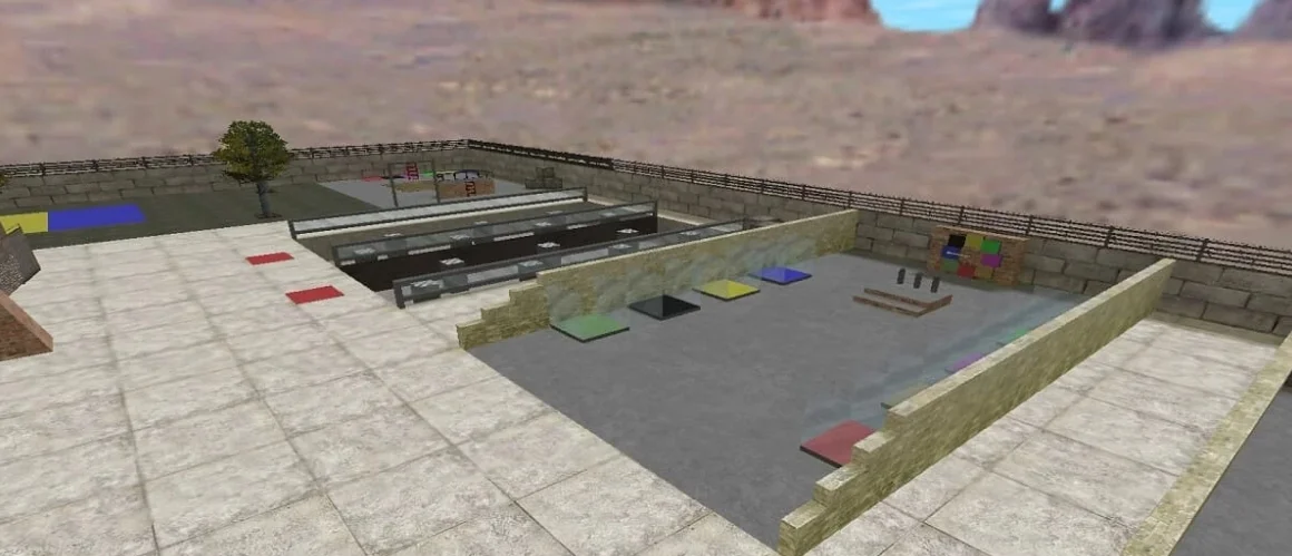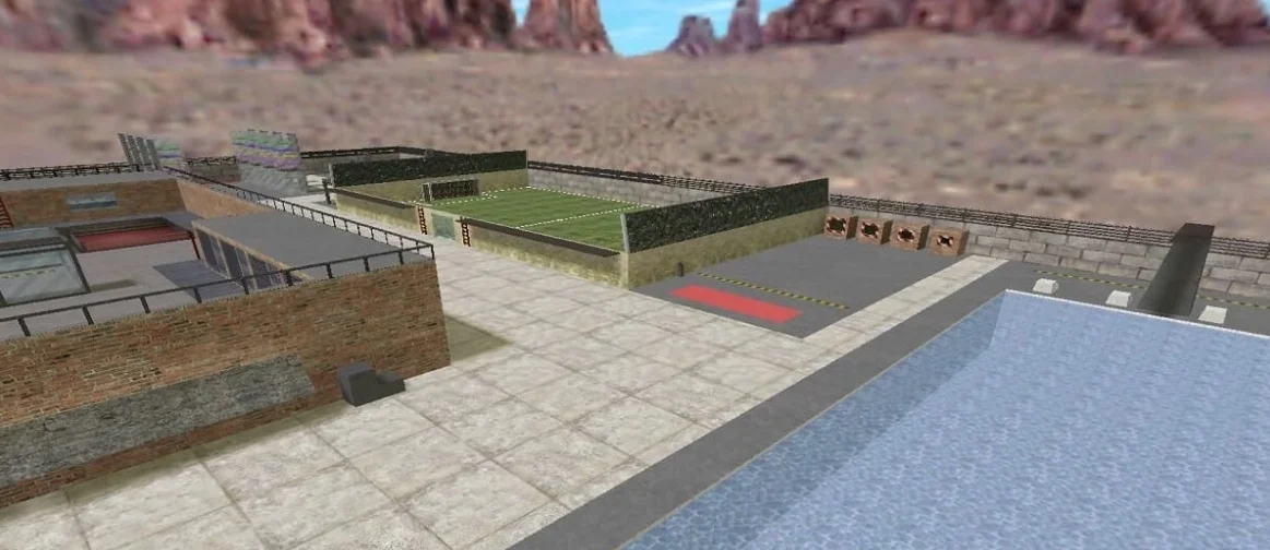 Все части, с которыми можно взаимодействовать разбросаны по всей её площади. Карта включает в себя бассейн, в котором можно искупаться а так же много других объектов.