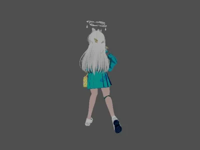 Модель «Girl Rabbit КТ/ТТ» - Голубой капюшон с ушками кролика, мягко ниспадающий на плечи, обрамлял лицо, где большие выразительные глаза цвета лазури искрились озорством и лёгкой меланхолией. Эти ушки, пушистые и игривые, с белыми кончиками, словно антенны, ловили вибрации невидимой музыки, что пульсировала в воздухе. Её одежда — это симфония оттенков лазурного: oversize худи, уютно облегающее стройную фигурку, с капюшоном, украшенным тем же кроличьим мотивом, создавала образ одновременно милый и футуристичный. Подол худи слегка задрался от лёгкого движения, открывая вид на короткие шортики, идеально подчёркивающие изящные бёдра. А ниже — те самые гольфы до середины бедра, плотной вязки, с белыми полосками, что добавляли нотку ретро-стиля из японской поп-культуры. Они обхватывали ноги, словно вторая кожа, подчёркивая их стройность и грацию, ведущую к белым кроссовкам на платформе — простым, но идеально белоснежным, готовым к танцу по цифровым волнам.