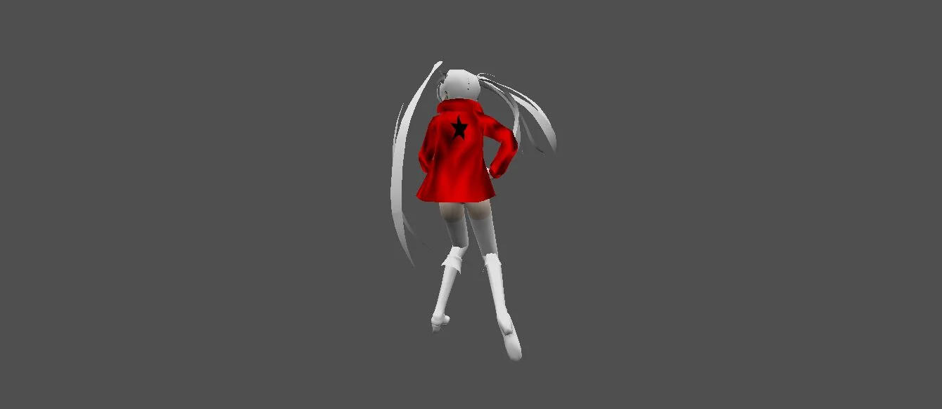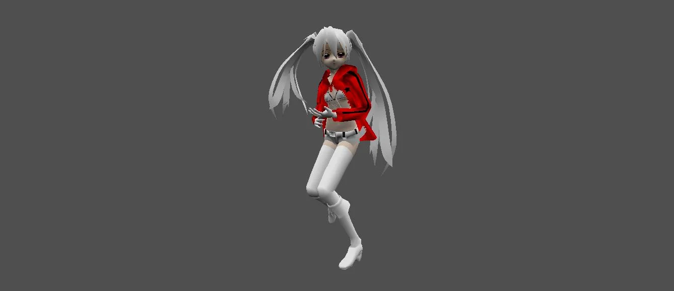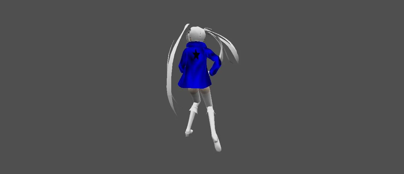 Модель «Miku Retextured» - Волосы, подобно серебряным водопадам, обрамляют ее лицо, привлекая внимание к глазам — окнам души, исполненным глубокой мудрости и невыразимой печали. В них отражается свет, что лишь подчеркивает их загадочность. Нежные оттенки ее кожи, контрастирующие с ярко-синим цветом куртки, создают завораживающее зрелище, привлекая взгляд и заставляя задуматься о ее происхождении. Куртка, ярко-синяя, словно кусочек небесного свода, одетая поверх другого, более откровенного наряда, добавляет образу нотку смелости и юношеской дерзости. Этот контраст стилей — классики и современности — подчеркивает ее уникальность, ее способность сочетать в себе, казалось бы, несовместимое. Белые шорты с черным ремнем, высокие белые гольфы и изящные туфли завершают образ, делая его цельным и запоминающимся.