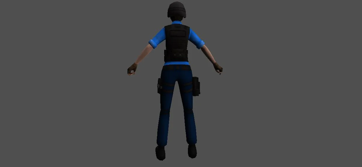 Модель «Brimob Girl КТ/ТТ» - ее ярко-синяя рубашка, контрастирующая с глубокой темнотой черного бронежилета, символизирует ее принадлежность к силам правопорядка. Этот жилет, как вторая кожа, защищает ее, подчеркивая физическую силу и готовность к бою. Под ним, на поясе, раскинулись различные подсумки и крепления, свидетельствующие о ее профессионализме и продуманности каждого элемента экипировки. Потертые синие брюки, с накладными карманами и усиленными коленями, – это одежда, созданная для действий, для преодоления любых преград, будь то городские джунгли или пересеченная местность.