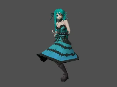 Модель «Miku Kurumi» - ее наряд, словно эхо готической сказки, приправленной ноткой современной дерзости, завораживает своей детальностью и игрой контрастов. Платье, выполненное в глубоком бирюзовом оттенке, с черными, словно молнии, зигзагообразными узорами, напоминает бушующее море или ночное небо, пронзенное молниями. Лиф платья, с тонкими бретелями, подчеркивает утонченность фигуры, а черный корсет с крестообразной шнуровкой добавляет образу драматизма и чувственности. Волосы Мику, словно бирюзовая водопад, ниспадают на плечи, обрамляя лицо с выразительными, большими глазами. Черные ленты, вплетенные в прическу, добавляют образу игривости и делают его еще более запоминающимся. Ее лицо, словно фарфоровая маска, выражает загадочность и легкую меланхолию, свойственную героиням готических историй. Это образ, который вызывает восхищение своей уникальностью и смелостью, образ, который заставляет замереть в восхищении и погрузиться в мир фантазий, где мода и искусство сливаются воедино.