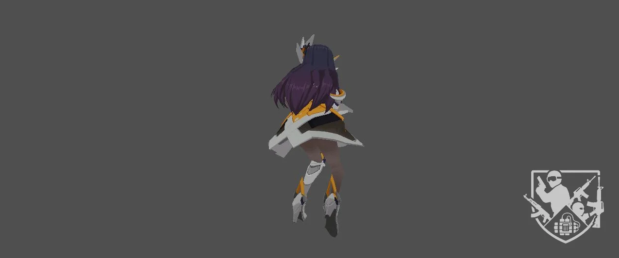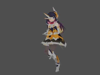 Ruby (Mecha Maiden) - изящные формы, контрастирующие с футуристическим бронированием, и яркая цветовая палитра делают эту модель визуально привлекательной и запоминающейся. Руби обладает характерной внешностью, типичной для героинь аниме. У нее большие, выразительные голубые глаза, обрамленные длинными ресницами, которые придают ей очаровательный и немного наивный вид. Ее волосы — темно-синие, длиной примерно до плеч, украшены двумя острыми, похожими на антенны, белыми элементами, которые гармонично вписываются в общую механическую эстетику. На шее повязан красный бант-галстук, добавляющий элемент костюму, делая его более игривым и женственным, что контрастирует с футуристическим бронированием. Основу образа Руби составляет футуристический костюм, сочетающий элементы органического и механического. Корсет и юбка выполнены в яркой комбинации желтого, белого и темно-синего цветов, с острыми, геометрическими формами, напоминающими лепестки или сегменты брони. Желтые элементы, украшенные черными вставками, создают динамичный узор, а белые — придают контраст и подчеркивают структуру. Спина украшена двумя крупными белыми выступающими элементами, похожими на крылья или стабилизаторы, которые усиливают ощущение боевой готовности.
