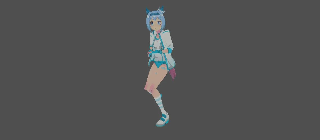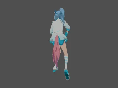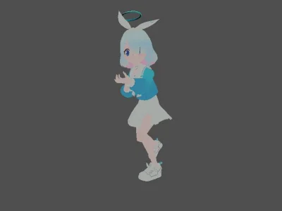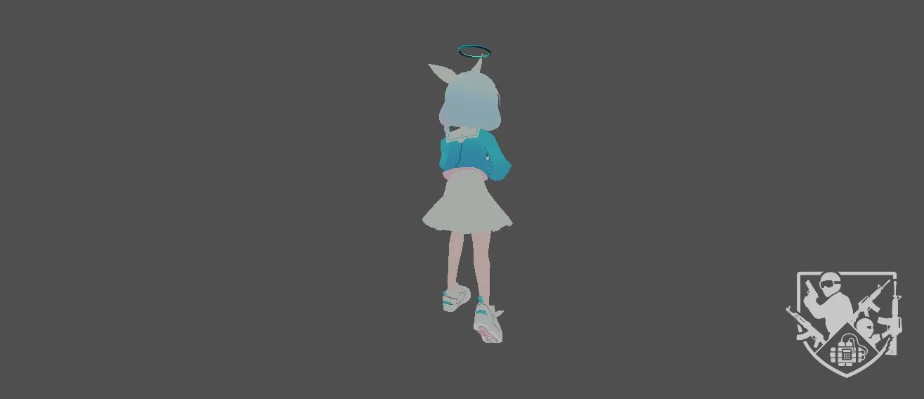 Модель «Arona» - облачена в одежду, которая подчеркивает ее юную натуру и легкий характер. На ней ярко-голубая кофта с объемными рукавами, отделанная белым кантом, который придает ей некоторую строгость, но вместе с тем и аккуратность. Ниже кофта переходит в короткую, пышную белую юбку, которая придает роботу движениям некую динамичность, даже когда модель статична. На ногах у нее белые кеды с светло-розовыми шнурками и подошвой, что явно указывает на ее активный образ жизни и юный возраст. Светлые, переливающиеся оттенки волос, от белого до нежно-голубого и розового, лишь добавляют ей воздушности и неземной красоты. Характерной особенностью Ароны, ярко выраженной в данной модели, являются ее нежные, кроличьи ушки, возвышающиеся над головой, и светящийся голубоватый нимб, опоясывающий ее макушку. Эти детали мгновенно придают ей ангельский или, возможно, мифический облик, делая ее образ более выразительным и запоминающимся. Нежные голубые глаза, обрамленные розовыми ресницами, широко раскрыты, что придает ей наивный и любопытный вид. Руки Ароны находятся в полусогнутом положении, словно она приготовилась к движению, объятию или, возможно, к какому-то магическому действию.