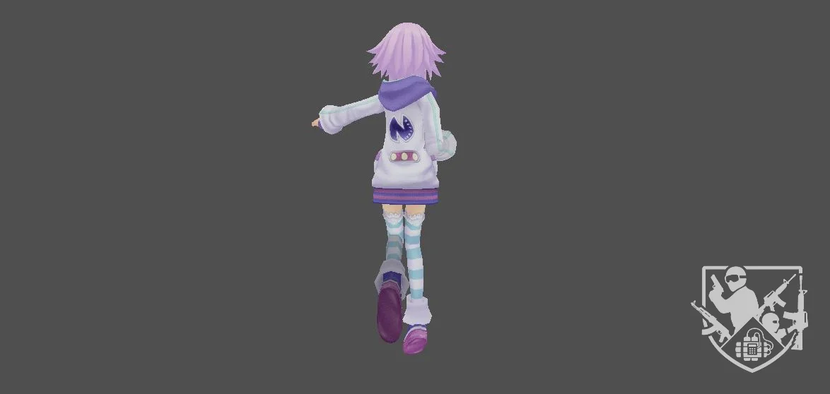 Одежда «Nelight» отражает последние тенденции молодёжной моды, в том числе элементы уличного стиля. Её худи с капюшоном, украшенное милым принтом (похожим на эмблему или логотип), и короткая юбка создают непринуждённый, но стильный образ. Гетры с полосками, сочетающие небесно-голубой и белый цвета, добавляют игривости и подчеркивают спортивный, активный характер персонажа. Весь облик «Nelight» указывает на то, что она создана для взаимодействия с миром, вероятнее всего — игровым. Её дизайн проработан с учётом анимации и выразительности, что позволяет ей легко оживать на экране, передавая эмоции и характер.