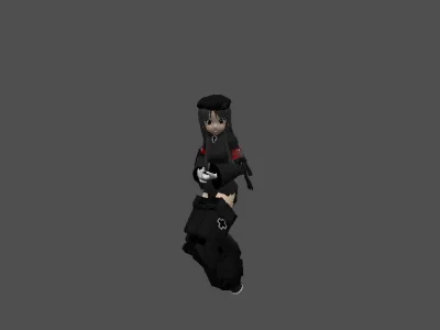 Модель «Mecha German» - демонстрирует глубокую проработку деталей, сочетая в себе грацию и скрытую мощь боевой машины. Центром композиции является андроид в тактическом облачении, чей облик выдержан в строгой монохромной гамме с акцентными красными элементами, подчеркивающими дисциплинированный характер дизайна. Ключевой особенностью облика выступает сочетание мягких черт лица и массивного, угловатого механизированного вооружения. Темный берет и темная униформа с характерной символикой Железного креста отсылают к эстетике стратегических стратегий и жанра «панцер-девушек». Каждая линия модели, от изящных белых перчаток до внушительных реактивных сапог, подчеркивает статус высокотехнологичного боевого юнита, готового к выполнению задач в условиях кибернетического конфликта.
