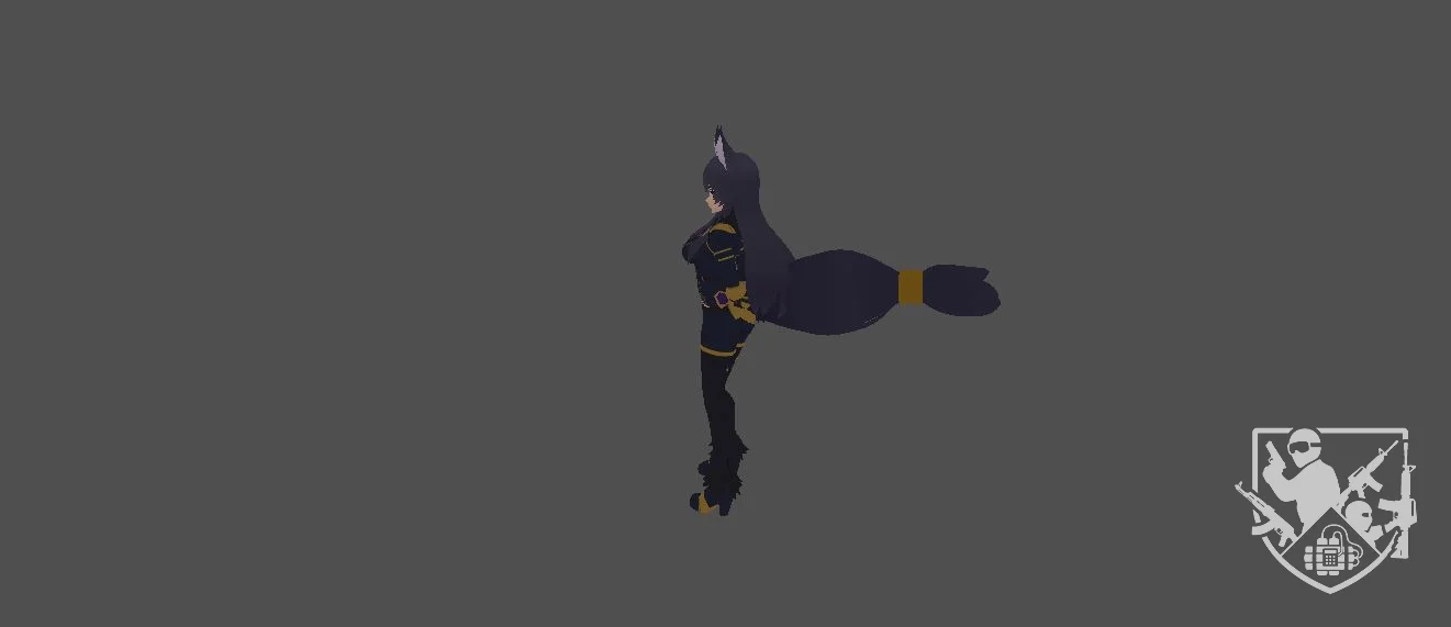 Модель «Delta» - глубокие угольно-черные оттенки костюма, инкрустированные благородным золотым орнаментом, создают контраст, который моментально приковывает взгляд. Основными ключевыми словами для данного образа являются: dark fantasy, nekomimi-атрибутика, атлетический силуэт, золотой акцент, экзотическая грация, цифровая готика. Этот персонаж не просто модель, а воплощение дисциплинированной силы, скрытой за утонченным, почти эфемерным обликом. Особое внимание в дизайне «Delta» уделено балансу между человекоподобностью и звериными чертами. Острые, внимательные уши и длинные, струящиеся волосы, контрастирующие с четко прорисованными линиями бронированного корсажа, подчеркивают её принадлежность к редкой, «хищной» расе кибернетических существ. Золотистая отделка, словно пульсирующие вены на фоне темной ткани, придает облику динамику, создавая ощущение, что модель готова к молниеносному движению в тени виртуального пространства. Здесь мастерство 3D-скульптинга достигает своего апогея, превращая статику в ожидание действия.
