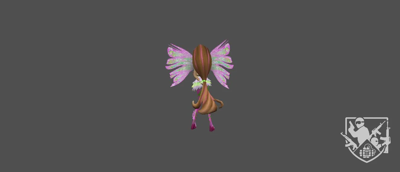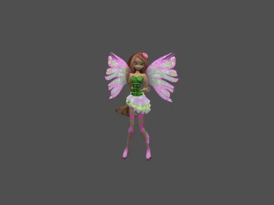 Модель «Flora» - мягкие градиенты розового и зеленого цветов создают гармоничный контраст, отсылающий к естественной палитре растений. Ключевые слова для данной модели: nature-magic, фея, цветочная эстетика, органические формы, 3D-фэнтези, нежность, фэнтезийный дизайн. Центральным элементом композиции являются детализированные, полупрозрачные крылья, чья текстура напоминает лепестки экзотических цветов, переливающиеся на свету и придающие силуэту легкость, почти невесомость. В дизайне «Flora» отчетливо прослеживается стремление автора к органической симметрии. Платье, стилизованное под раскрывающийся бутон, и изящные элементы, напоминающие лозу или стебли на ногах, подчеркивают связь персонажа с окружающим миром природы. Каждая деталь модели проработана таким образом, чтобы создать ощущение природной хрупкости, сочетающейся с магической силой. Мягкие, приглушенные оттенки зеленого в сочетании с яркими розовыми акцентами позволяют модели выглядеть «живой» и насыщенной, превращая статичный образ в динамичную историю о гармонии и защите лесных просторов.