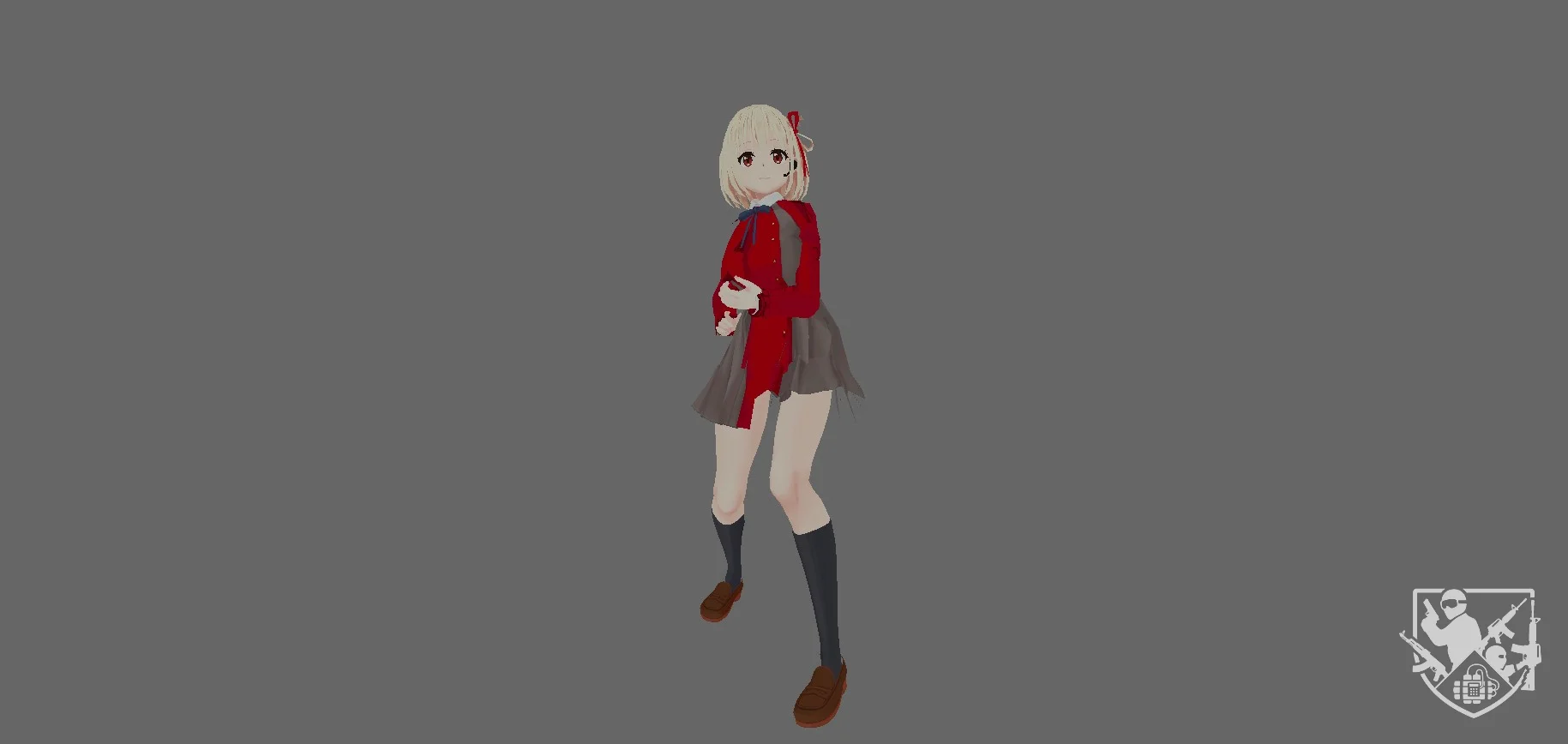 Модель «Чисато Нишикиги» - из аниме «Ликорис Рикоил» выполненная в стиле школьной формы. Персонаж представлен в боевой стойке, что обеспечивает лучшую визуальную интеграцию в динамичный игровой процесс. Скин имеет две цветовые вариации верхней части костюма — синюю и красную, полностью соответствующие каноничному образу героини. Детализированная проработка модели позволяет фанатам аниме насладиться уникальным обликом персонажа в привычной атмосфере классического шутера.