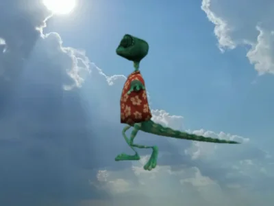 Модель «Rango» - выполнена в стиле хамелеона который одет в красную рубашку с белыми цветочками.