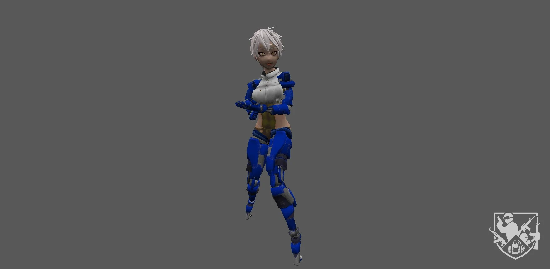 Модель «Cyber Girl» - девушка-киборг в тактическом экзоскелете с неоновой подсветкой и кибер-очками. Доступна в красном и синем цветах для чёткого разделения команд.