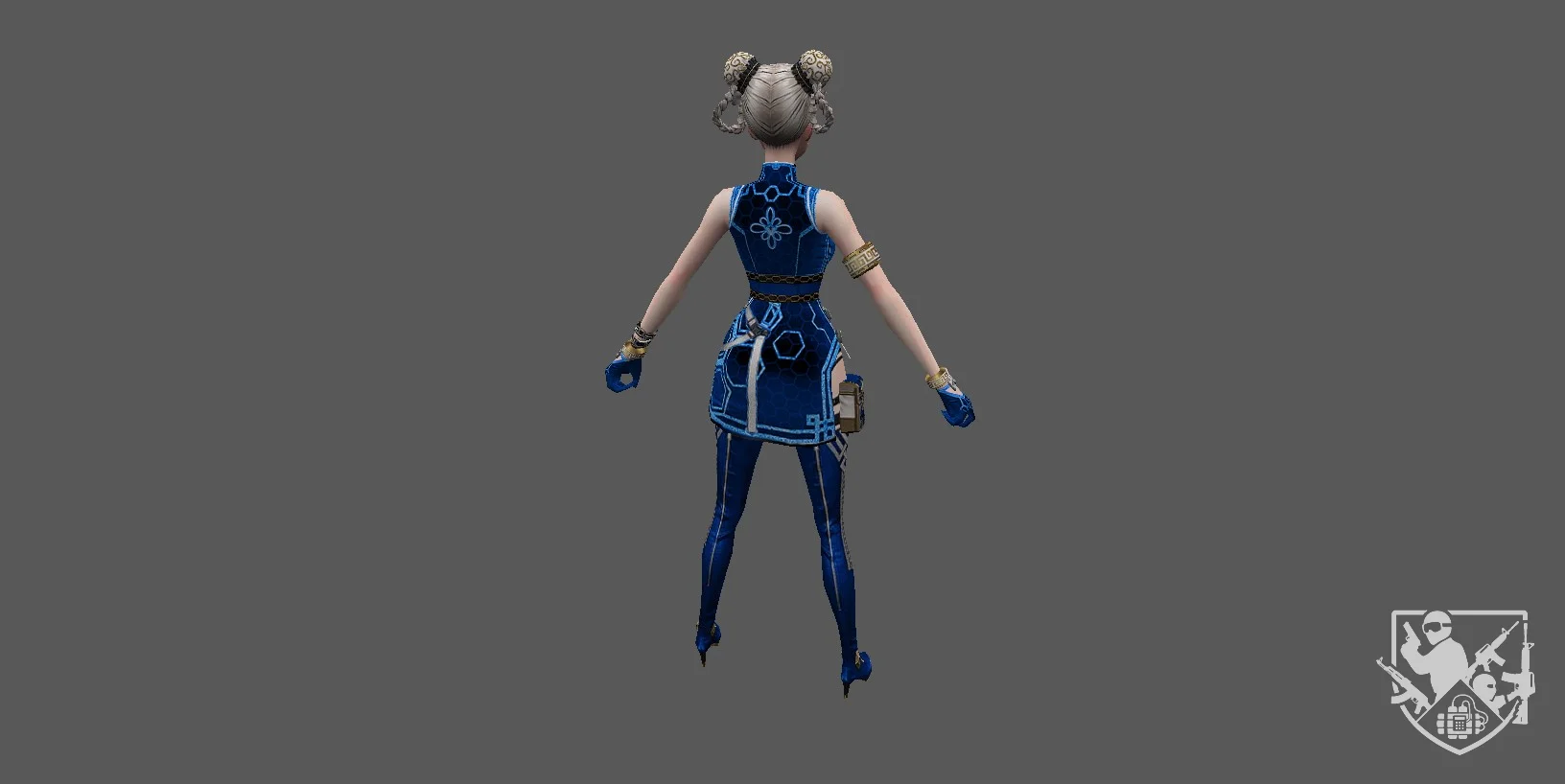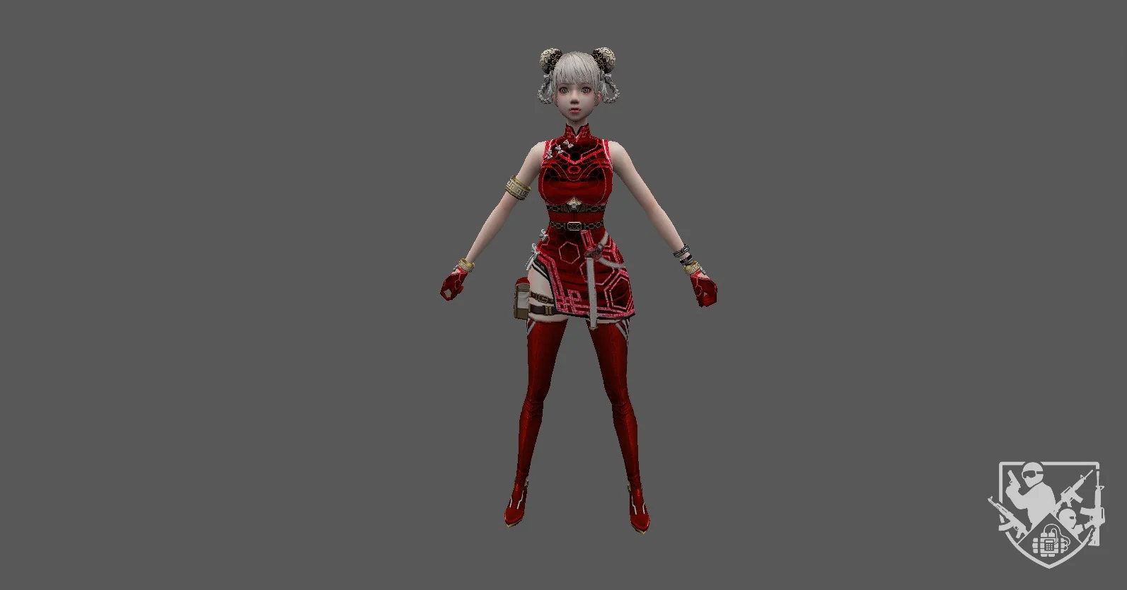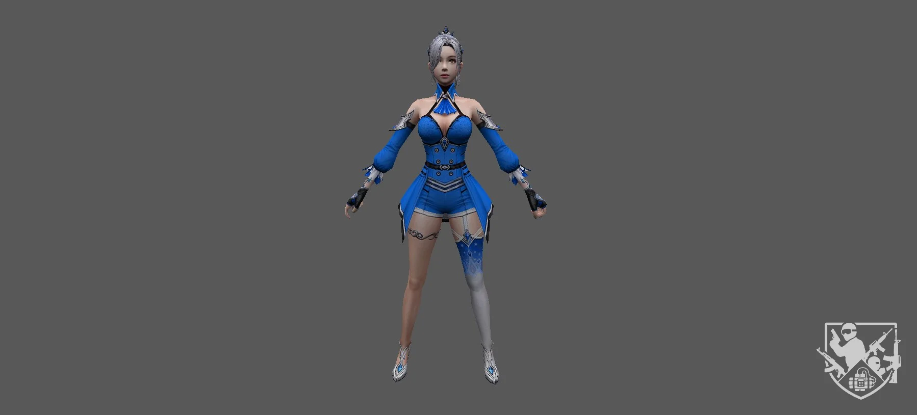 Костюм включает лёгкую броню, ремни и аксессуары для боевого стиля, подчёркивая готовность к действию и динамику движений.В целом модель сочетает современный городской стиль, грацию и боевую эффективность, создавая узнаваемый и выразительный образ на картах CS 1.6.