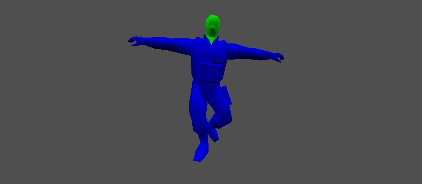 Яркая зеленая голова служит контрастным элементом, гарантируя, что ваш персонаж всегда будет виден, что критически важно в динамичных тактических ситуациях. Общий яркий окрас этих моделей не только создает уникальный и запоминающийся образ, но и дает вам игровое преимущество. Кроме того, красно-синие модели, четко разделяющие игроков на красных и синих, позволяют мгновенно отличать союзников от противников на любой карте.