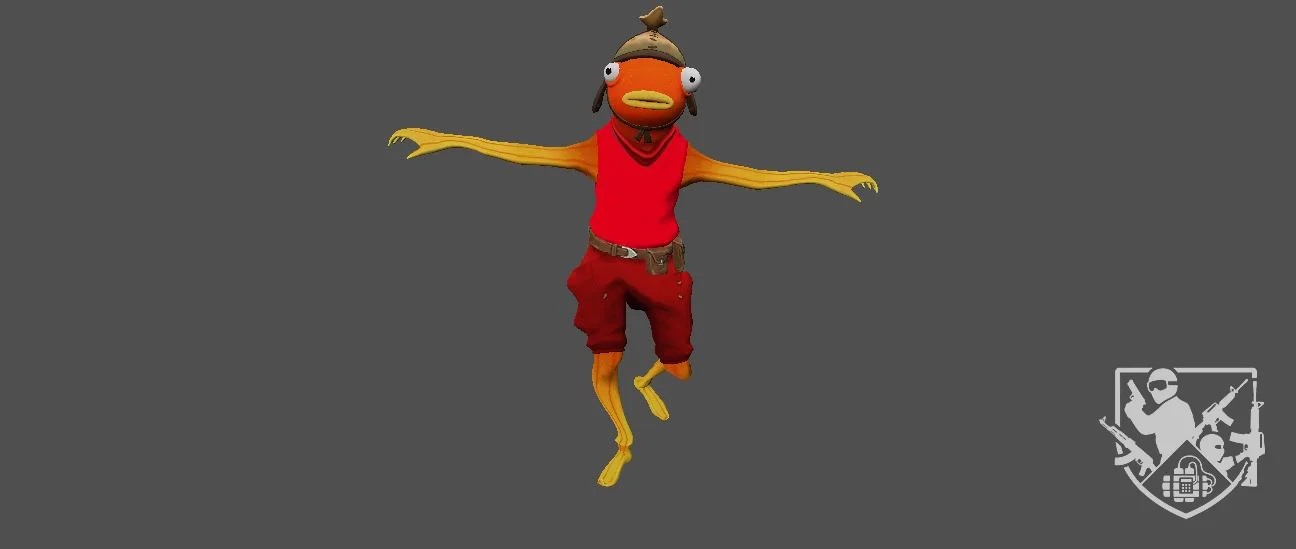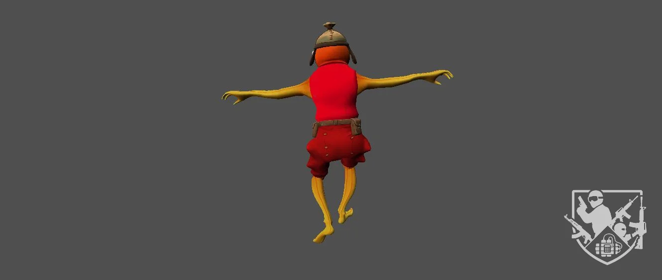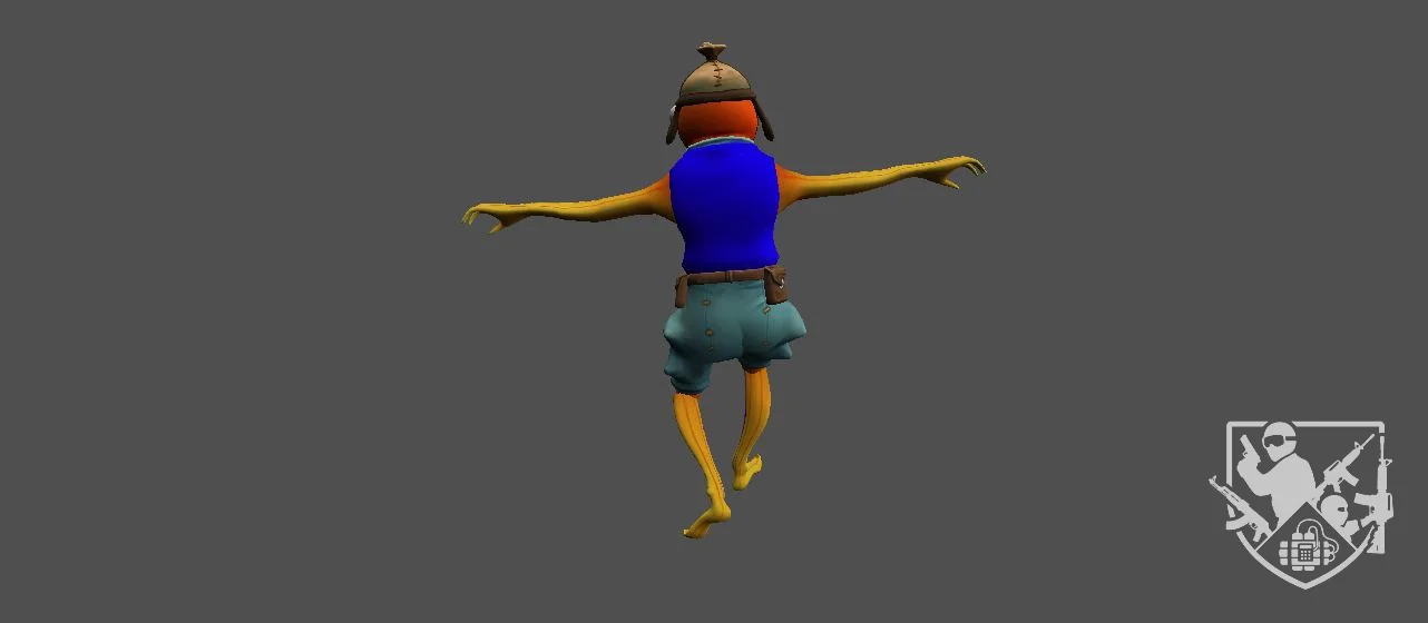 Модель «Карасик» - голова персонажа окрашена в яркий оранжевый цвет, что сразу же выделяет его из общей цветовой гаммы. Большие, выпученные глаза с четкими зрачками придают ему выразительный, немного удивленный или настороженный вид. На голове красуется небольшая кожаная шапка с ремешком, которая добавляет образу некоторую практичность и намекает на его возможную деятельность. Рот персонажа представляет собой характерную для рыбы щель, но при этом он выглядит достаточно подвижным, способным передавать эмоции. Общий вид модели «Карасик» создает образ энергичного, любопытного персонажа, готового к любым приключениям. Сочетание ярких цветов, детализированной одежды и характерных черт животного делают его запоминающимся и узнаваемым.