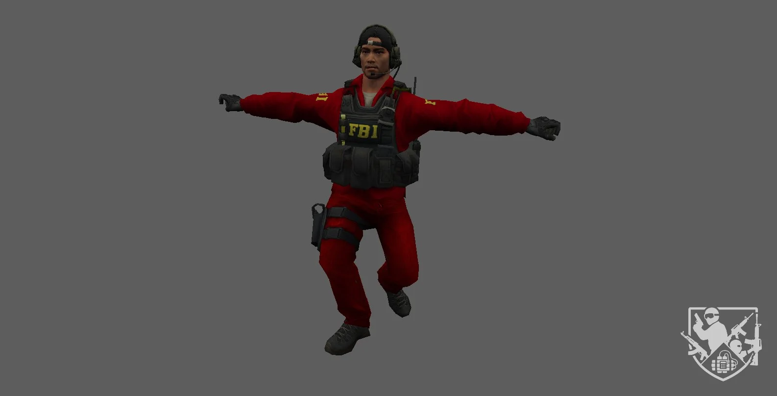 Модель «Оперативника ФБР» - из CS:GO, с детально проработанным тактическим снаряжением. Персонаж оснащен гарнитурой, бронежилетом с символикой спецслужб и кобурой, что придает облику реалистичности. Скин доступен в двух вариантах расцветки униформы классической синей и альтернативной красной для удобства командной игры. Данная модель качественно переносит современную эстетику «Агента» в классический движок, сохраняя узнаваемый внешний вид.