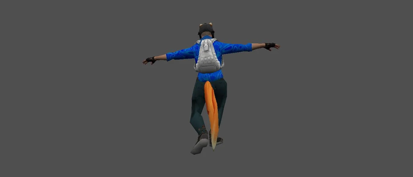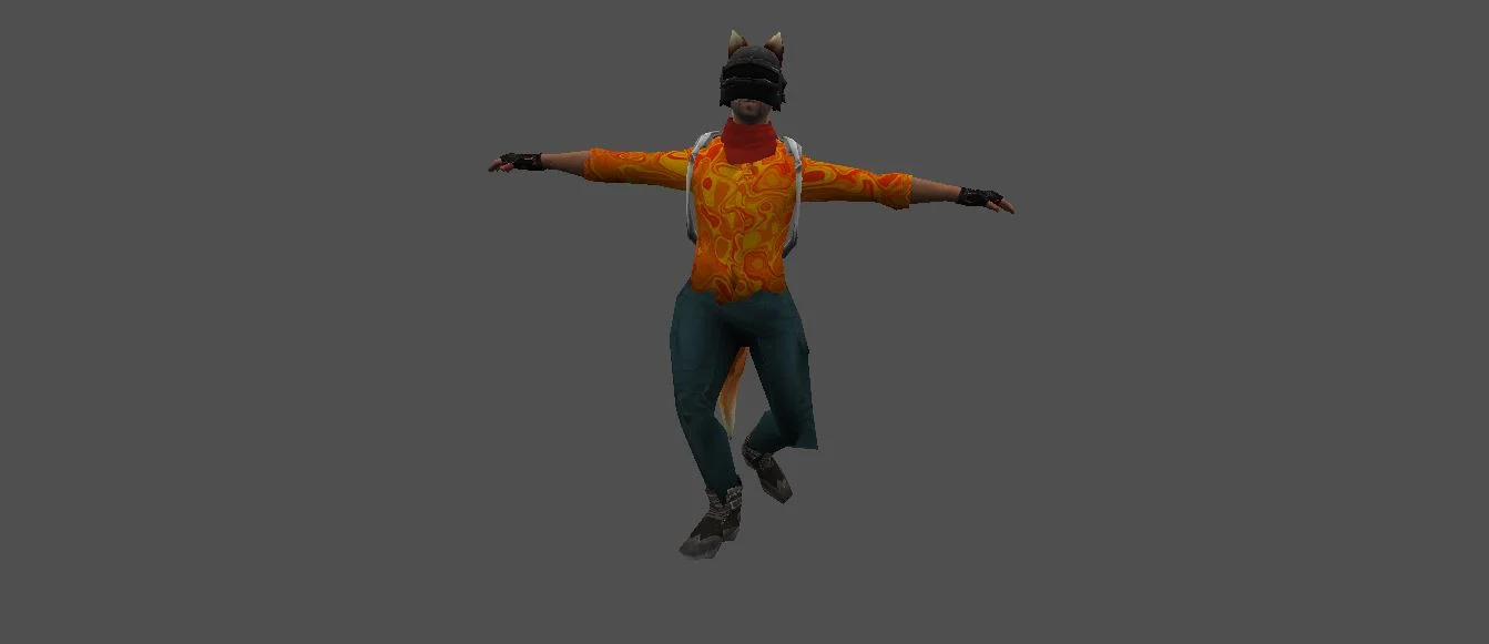 Модель «Pubg Лис КТ/ТТ» - Этот узор, словно пульсирующая энергия, пронизывает одежду, делая ее центром внимания. На голове – капюшон, стилизованный под уши животного, возможно, кошки или лисы, что придает ему элемент игривости и, возможно, намекает на его игровую расу или способности. Поверх одежды – рюкзак, аккуратно прилегающий к спине, словно он готов к долгим странствиям, к выполнению миссий и сбору добычи. Небольшие черные перчатки на руках добавляют ему некую элегантность, а также могут указывать на его ловкость и навыки.
