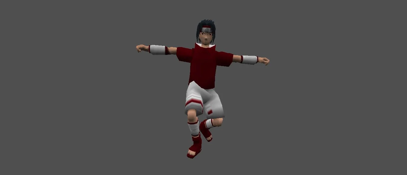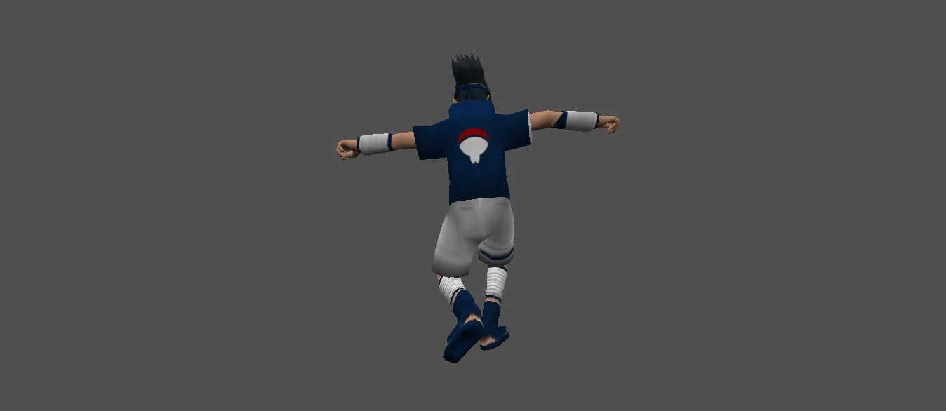 Модель «Uchiha» - Его тело, стройное и гибкое, облачено в традиционное для его народа одеяние: темно синюю короткую куртку с высоким воротом, белые шорты с характерными полосами вдоль бедер и низкие синие сандалии, закрепленные обмотками, доходящими до колен. На его голове повязка с символом его деревни, свидетельство принадлежности и верности, хотя истинная верность Саске часто подвергается испытаниям. Образ Саске — это символ стремления к силе, искупления и поиска своего места в мире, где тень прошлого всегда преследует.