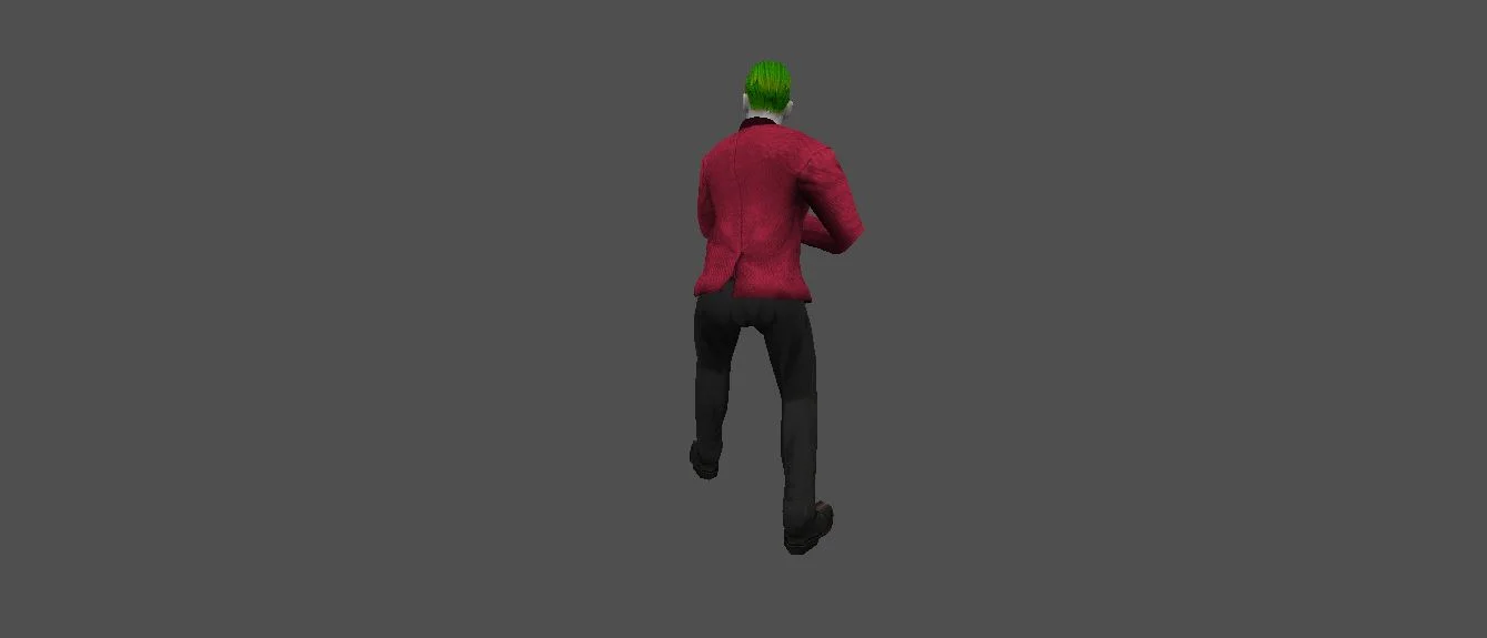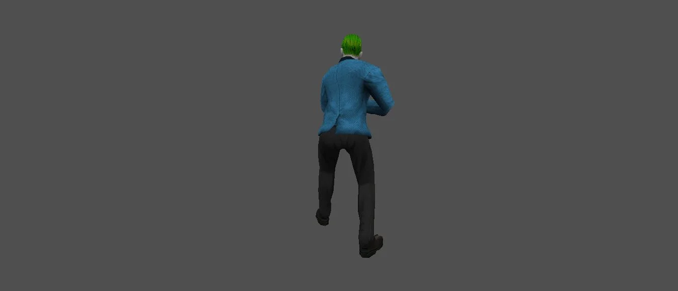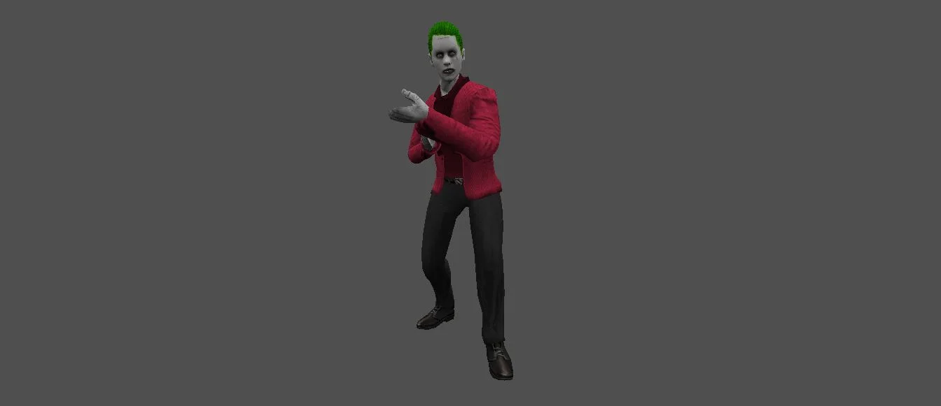 Модель «Joker Djared Leto» - Его лицо, бледное, словно пергамент, испещрено шрамами, которые, подобно нитям, соединяют его зловещую улыбку с остатками былого, искаженного безумием. Одет он в яркий, но, казалось бы, небрежно подобранный наряд. Голубой пиджак, несколько тесноватый, надет поверх черной водолазки, которая лишь подчеркивает бледность его кожи. Брюки, также черные, плотно облегают ноги, заканчиваясь классическими туфлями. Весь его облик кричит о стремлении выделиться, нарушить обыденность, внести свою долю безумия в мир, который он считает слишком предсказуемым и скучным.