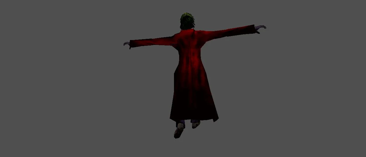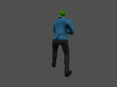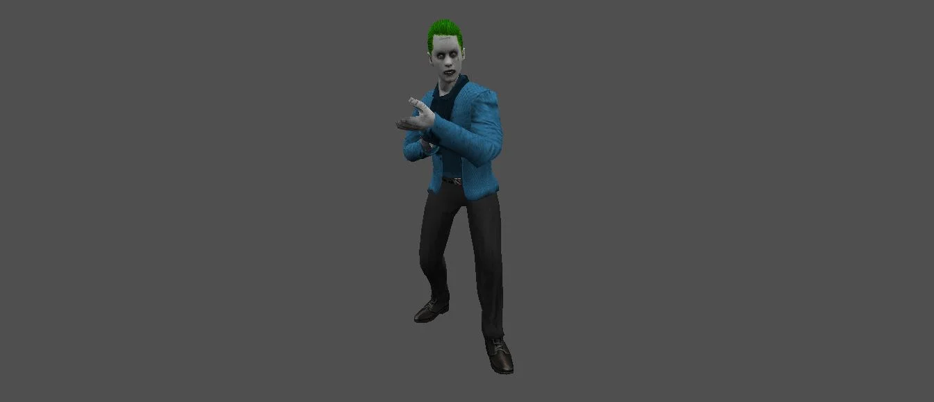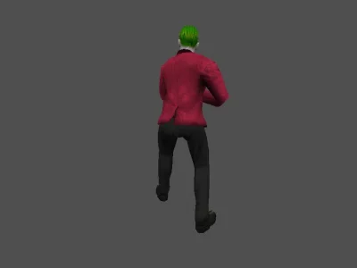 Модель «The Joker» - лицо модели это одновременно маска и истинное отражение искаженной натуры. Бледная, почти мертвая кожа контрастирует с яркой, кроваво-красной улыбкой, растянувшейся неестественно широко, намекая на вечный, мучительный смех. Глаза, обведенные темным гримом, смотрят с безумным блеском, в них читается игра, боль и полная потеря связи с реальностью. Зеленые, растрепанные волосы добавляют образу небрежности и подчеркивают его непредсказуемость. Костюм «Джокера» — это тщательно подобранный ансамбль, который одновременно выдает его стремление к эпатажу и театральности. Классический, но при этом слегка потрепанный темно-бордовый пиджак с широкими лацканами и зеленой жилеткой создают силуэт, который ассоциируется с цирком и старыми театральными представлениями. Под жилеткой видна белая рубашка, возможно, слегка небрежно надетая, а ее воротник не всегда аккуратно лежит.