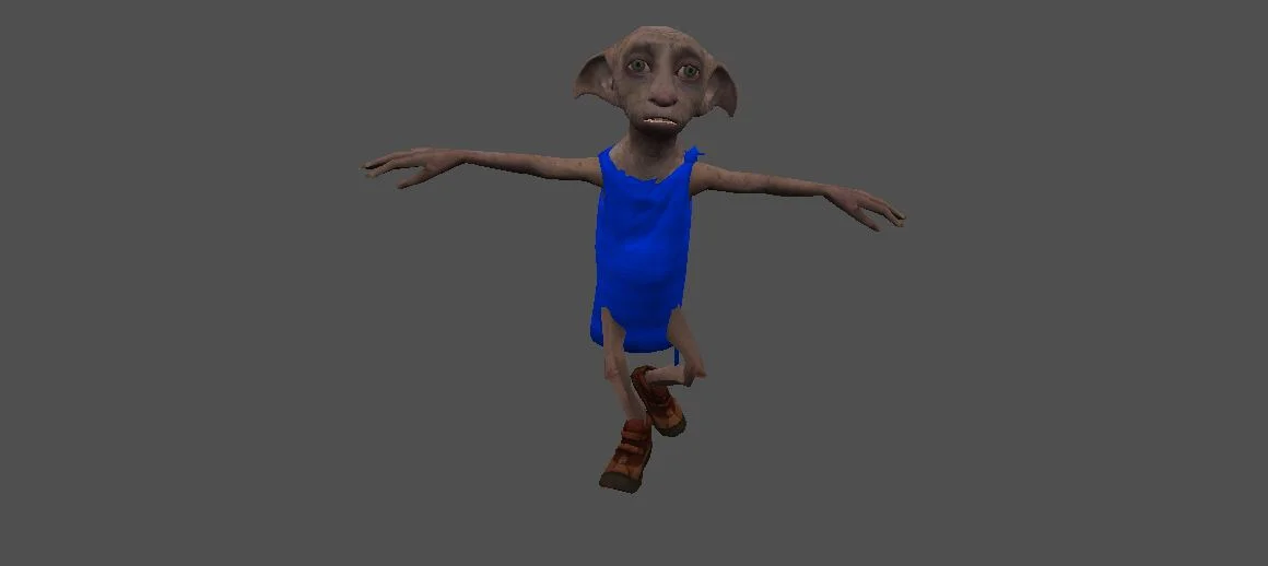 Модель «Добби» - это существо, чья внешность вызывает одновременно и жалость, и умиление, предстает перед нами в своем узнаваемом наряде. Его тело худощавое, с тонкими, но жилистыми конечностями, что подчеркивает его природу домового эльфа. Кожа имеет землистый, зеленовато-серый оттенок, с выраженными морщинами и складками, особенно на лице и шее, что свидетельствует о его возрасте и многочисленных тяготах, пережитых прежде. Отличительной чертой Добби являются его огромные, выразительные уши, похожие на уши летучей мыши, которые чутко прислушиваются к окружающему миру. Гигантские, круглые глаза, невинные и полные печали, обрамлены густыми ресницами и часто смотрят с тревогой или надеждой. Нос Добби маленький и приплюснутый, с открытыми ноздрями, а рот небольшой, часто слегка приоткрыт, что создает впечатление робости или удивления.