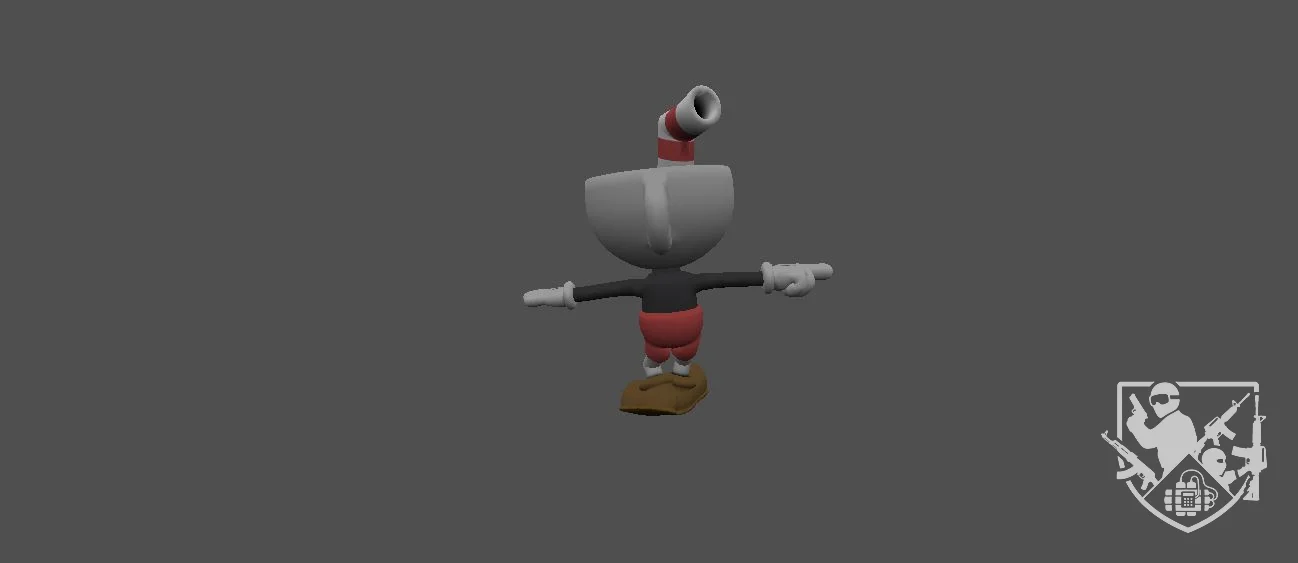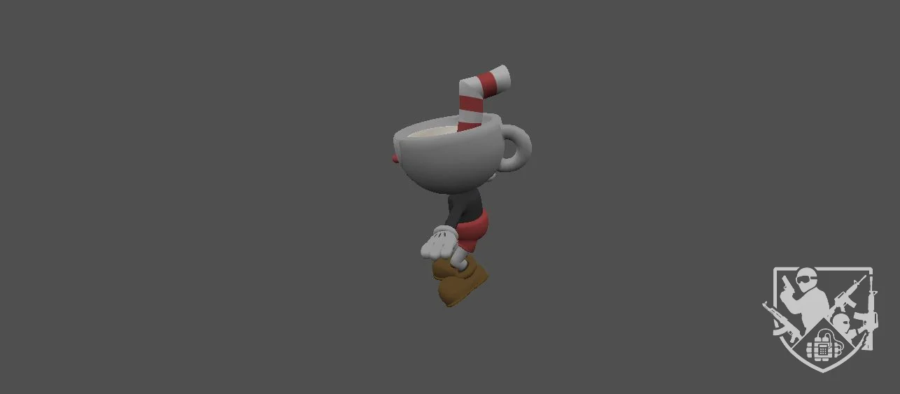 Модель «Cuphead» - эта модель воплощает в себе эстетику классической анимации 1930-х годов, переработанную с помощью современных технологий, что создает уникальное и запоминающееся визуальное произведение. Cuphead представляет собой антропоморфную чашку с выразительной мимикой. Его корпус выполнен в форме классической чайной чашки белого цвета, украшенной характерными красными полосами на ободке. Глаза персонажа — два черных круга, расположенных на белой лицевой части, придают ему внимательный и несколько озорной вид. Красный рот, часто широко распахнутый в решительной или радостной гримасе, подчеркивает его неукротимый характер. Одежда Cuphead воссоздана с поразительной точностью, отражая каноны стиля 30-х годов. На нем надеты черные перчатки, которые визуально выделяют его руки, и красные шорты с высокой талией, напоминающие одежду персонажей той эпохи. На ногах — пара массивных коричневых ботинок, придающих ему устойчивость и завершающих образ.