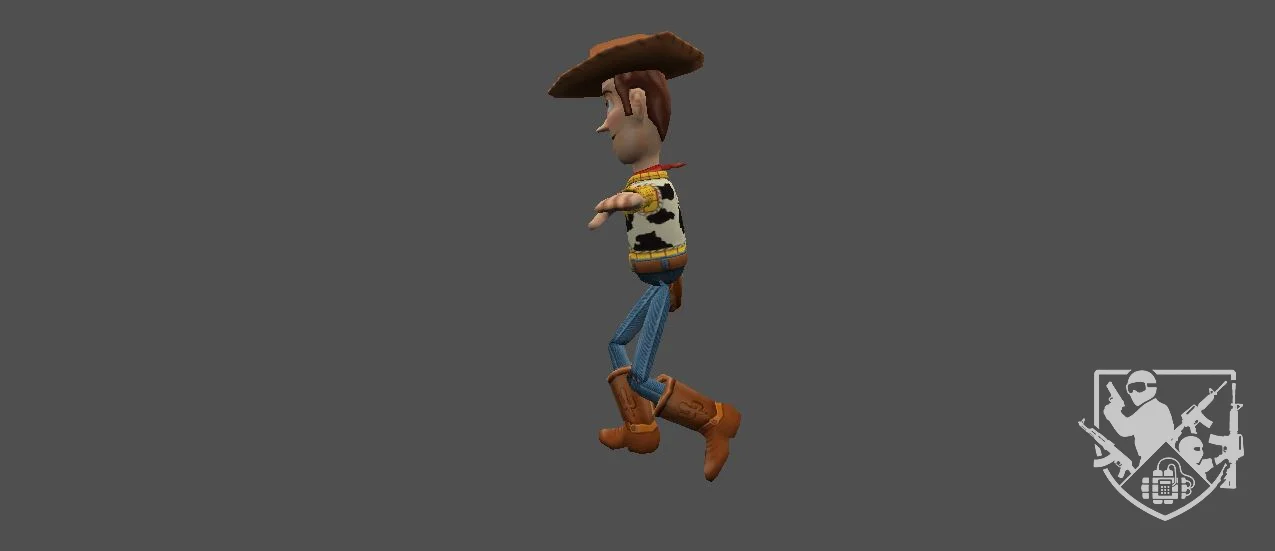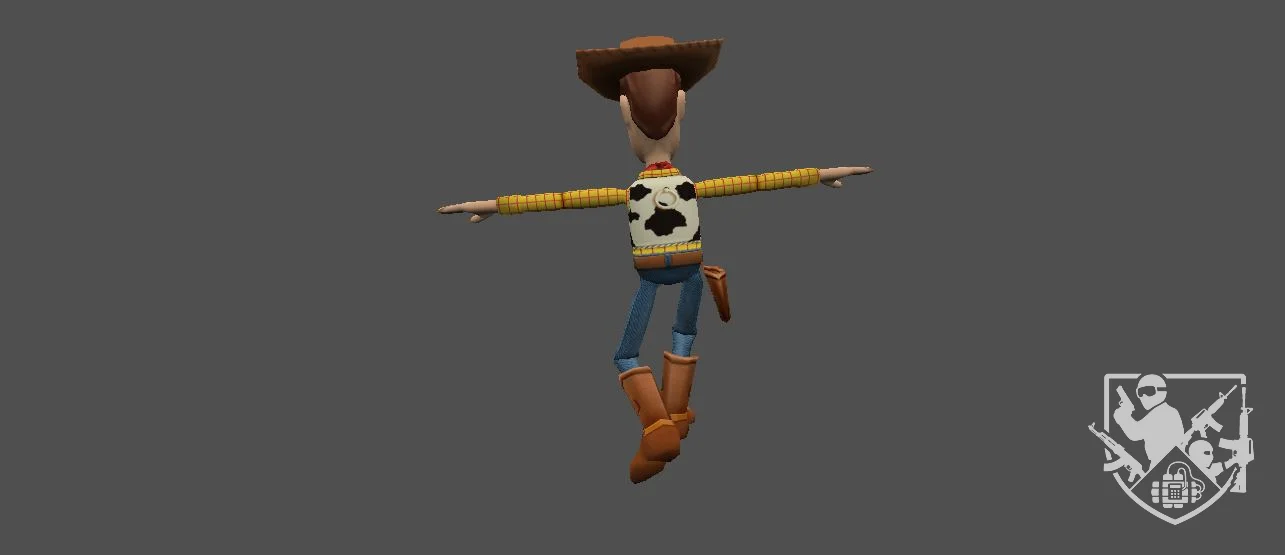 Модель «Sheriff Woody» - эта модель является воплощением духа приключений, верности и неугасаемой дружбы, перенесенным в трехмерное пространство с сохранением всех узнаваемых черт любимого героя. Вуди предстает перед нами в своем классическом образе — это антропоморфная игрушка, представляющая собой ковбоя. Его фигура характеризуется стройными, но крепкими пропорциями, созданными с учетом стилистики оригинальной анимации. Голова Вуди немного крупнее, чем можно было бы ожидать от реалистичного человека, что подчеркивает его игрушечную природу, но при этом детализирована с высокой точностью. Мимика Вуди, ожившая в трехмерном пространстве, передает широкий спектр эмоций — от решимости и смелости до уязвимости и искренней радости. Каждый элемент одежды Вуди тщательно проработан, чтобы максимально соответствовать его образу. На нем — характерная клетчатая рубашка с длинными рукавами, выполненная в желтых тонах, с белой средней частью, украшенной изображением коровы. Поверх рубашки — жилет шерифа, где отчетливо видна эмблема с надписью «Andy», символизирующая его принадлежность и преданность своему хозяину. Синие джинсы с характерными потертостями и ремень с большой пряжкой, также носящие следы времени и приключений, завершают образ. На ногах — коричневые ковбойские сапоги с украшениями, добавляющие аутентичности. Неотъемлемой частью образа является знаменитая коричневая ковбойская шляпа, сидящая на голове, которая придает Вуди еще больше характерности.