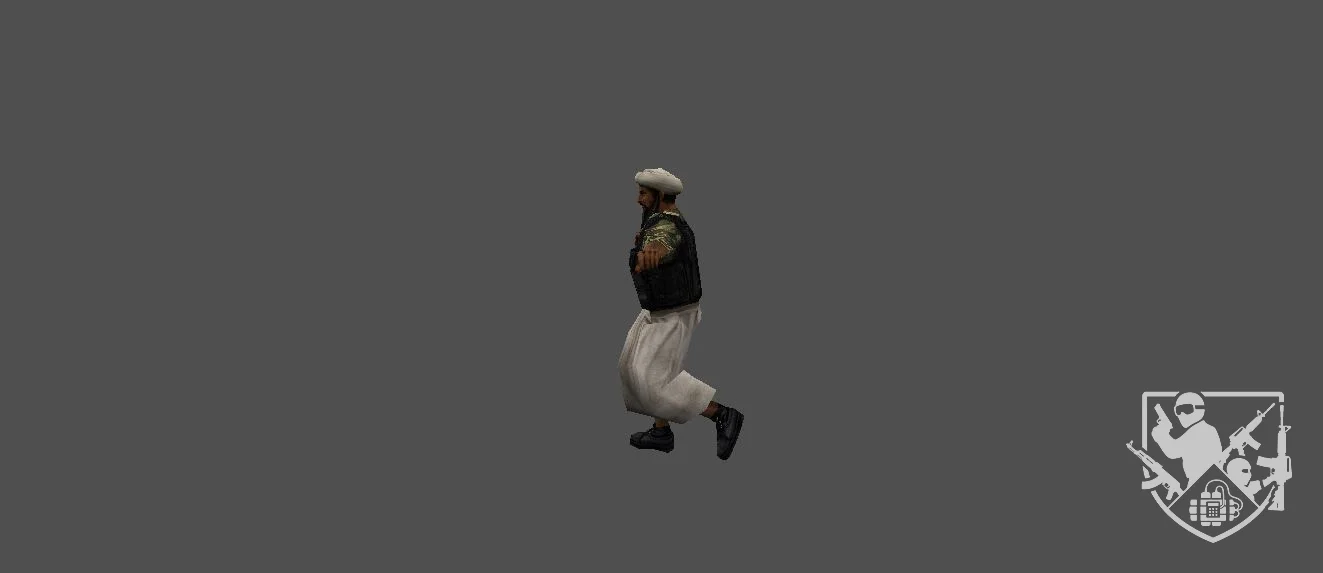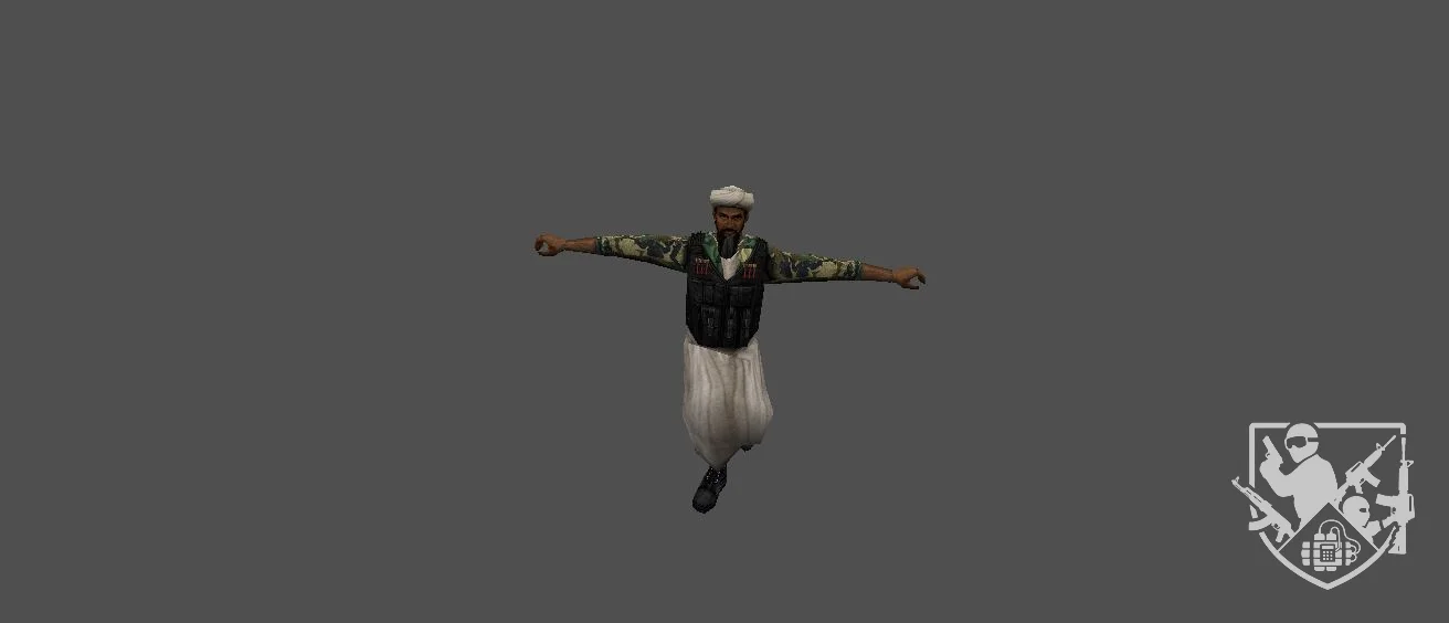 Модель «Осама Бен Ладен» - каждый шов на тактическом жилете, каждая складка на рукаве говорит не столько о стилистике, сколько о функциональности этого цифрового двойника, созданного для заполнения определённой роли в симуляции геополитического противостояния. Цветовая палитра, выдержанная в приглушённых, пыльных тонах пустыни, работает на погружение, в то время как тщательная проработка низкополигональной сетки позволяет этой фигуре двигаться в средах с ограниченными ресурсами, оставаясь при этом иконографически узнаваемой.