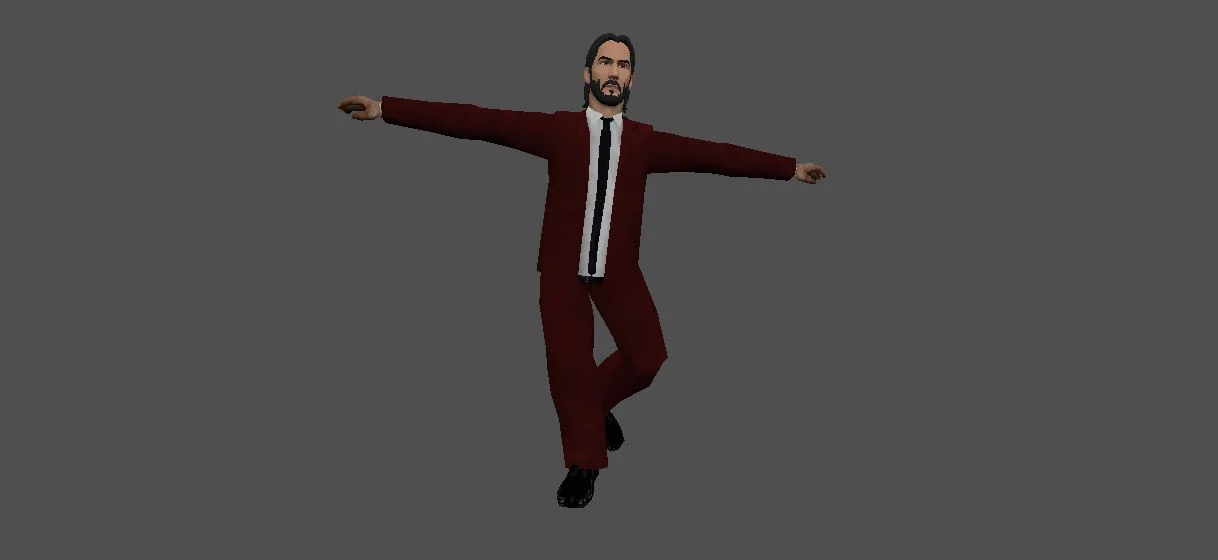 Модель «John Wick КТ/ТТ» - предстает в своем иконическом синем костюме — безупречном, как и его репутация. Этот костюм, словно вторая кожа, подчеркивает его силу и элегантность, делая его идеальным хищником в любой среде. На его лице – суровая мимика, которую нельзя назвать выражением гнева или страха, скорее – абсолютная концентрация и отстраненность. Короткая стрижка и легкая щетина придают ему вид человека, который не ищет света и предпочитает действовать в тени. Его знаменитая борода, короткая и аккуратно подстриженная, подчеркивает его зрелость и опыт, накопленный за годы, проведенные в мире насилия. В его взгляде, даже в этой стилизованной форме, читается невысказанная история боли, утраты и неугасимой жажды справедливости, пусть даже и в самой ее жестокой форме.