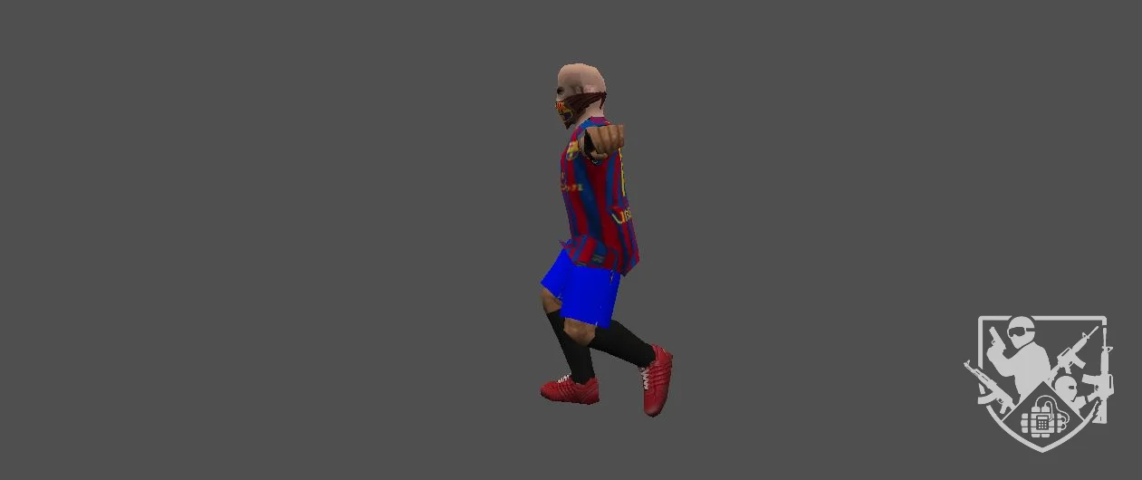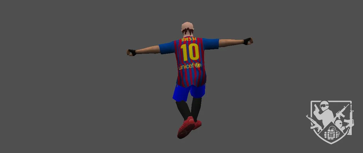 Модель «Лео Месси – Барселона» - модель стремится передать не только узнаваемый облик одного из величайших игроков всех времен, но и дух его игры, наполненный грацией, скоростью и неудержимым стремлением к победе. Данная модель демонстрирует Месси в одном из культовых образов, который ассоциируется с его эпохой в «Барселоне». Отсутствие волос на голове — характерная черта его внешности — передано с высокой точностью, подчеркивая его уникальный вид. На лице игрока красуется маска, стилизованная под эмблему клуба «Барселона», которая является узнаваемым элементом его имиджа, возможно, отражающим годы преданности команде или особый период его карьеры. Мимика, насколько это позволяет статичная модель, передает сосредоточенность и решимость, присущую знаменитому футболисту. На модели Месси надета домашняя форма «Барселоны» того периода, отличающаяся традиционными красно-синими вертикальными полосами. На груди отчетливо виден логотип спонсора «Qatar Foundation», являвшегося важной частью клубной символики. Синие шорты и черные гетры, плотно облегающие ноги, дополнены красными бутсами с белыми шнурками – всё это создает аутентичный образ игрока на поле. Черные перчатки на руках, хоть и не являются стандартным атрибутом Месси, добавляют модели завершенности и визуальной детализации.