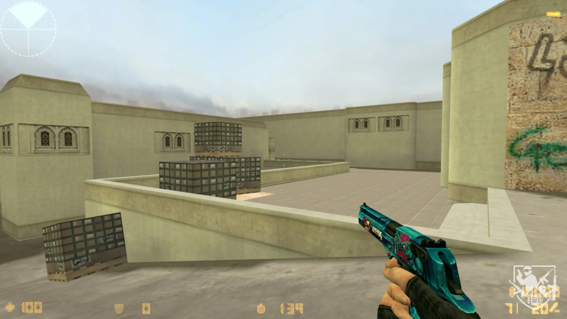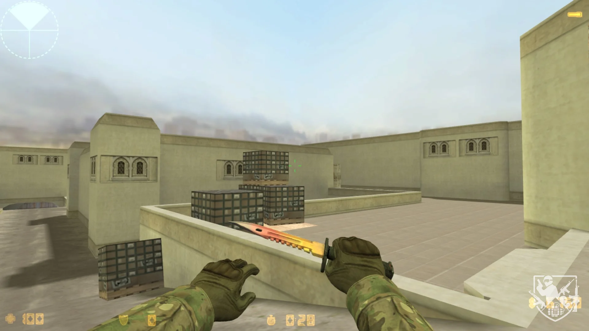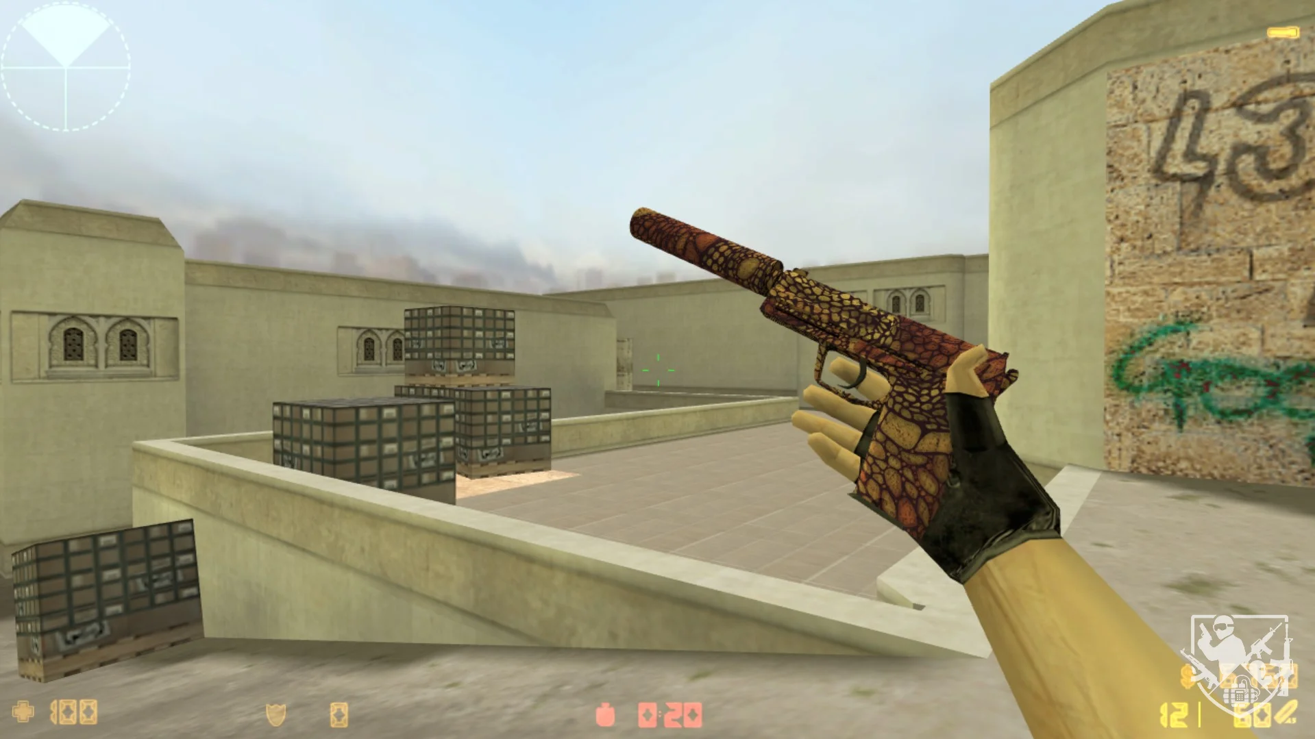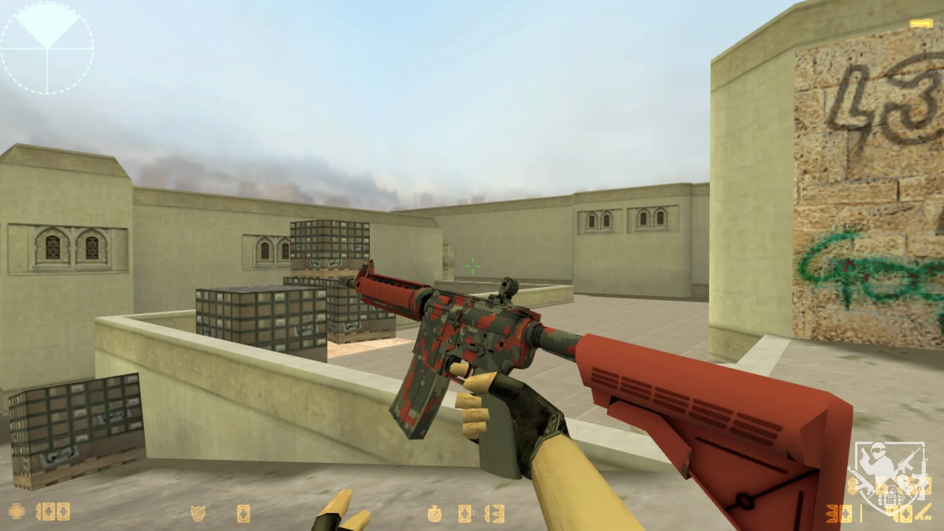 В основу визуальной составляющей легло 27 скинов для оружия, каждый из которых стилистически дополнен стандартными перчатками, что обеспечивает единообразие и профессиональный вид. Цветовая дифференциация команд стала ещё ярче: террористы облачены в заметные красные оттенки, а спецназовцы — в контрастные синие, что мгновенно облегчает идентификацию противников и союзников в динамике боя. Интерфейс меню был переработан с внедрением тёмной темы, дополненной прозрачными и голубыми элементами, придавая ему современный и элегантный вид. Главное меню украшает мощный образ контр-террориста, вооружённого автоматом Калашникова, что служит визуальным акцентом и задаёт тон всей сборке.