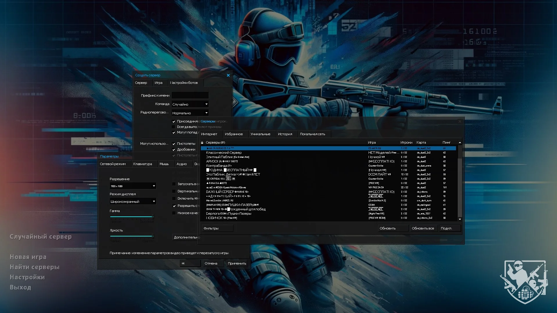 - Фон главного меню: Главный экран теперь украшает детализированное изображение контр-террориста, вооружённого автоматом Калашникова, что добавляет сборке атмосферности и мощи.